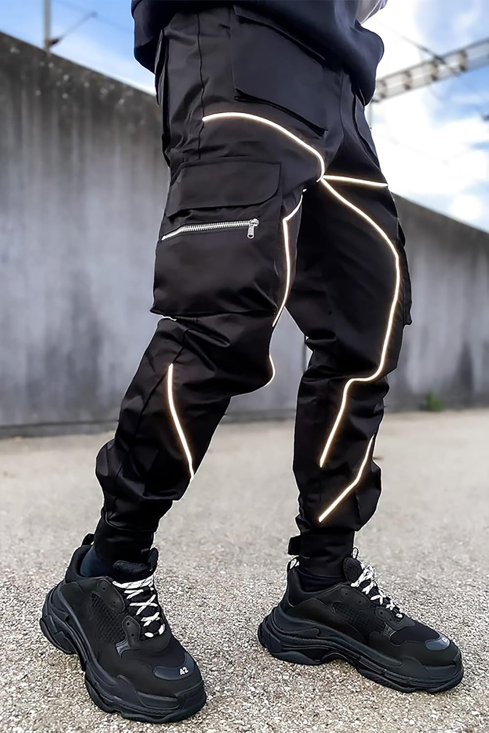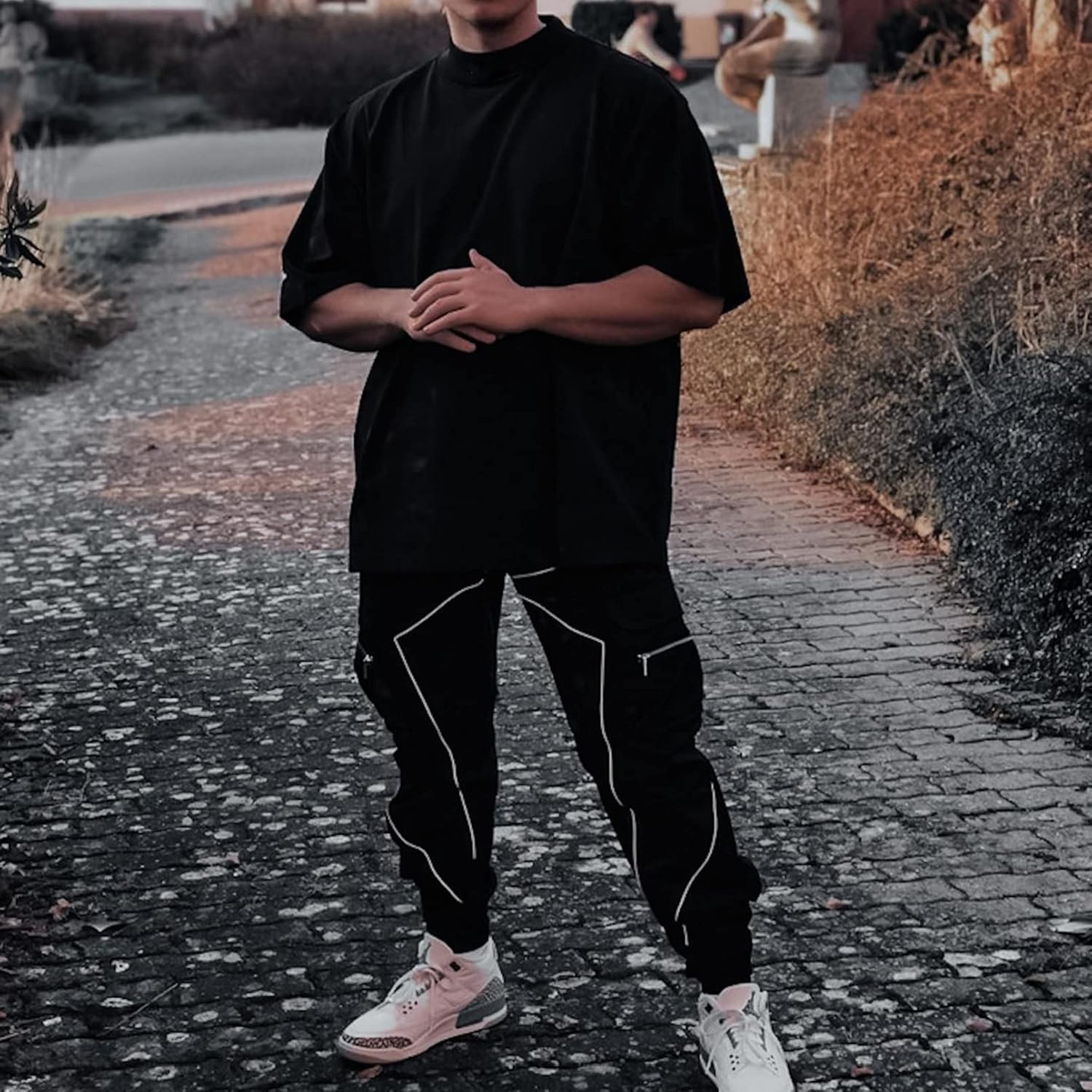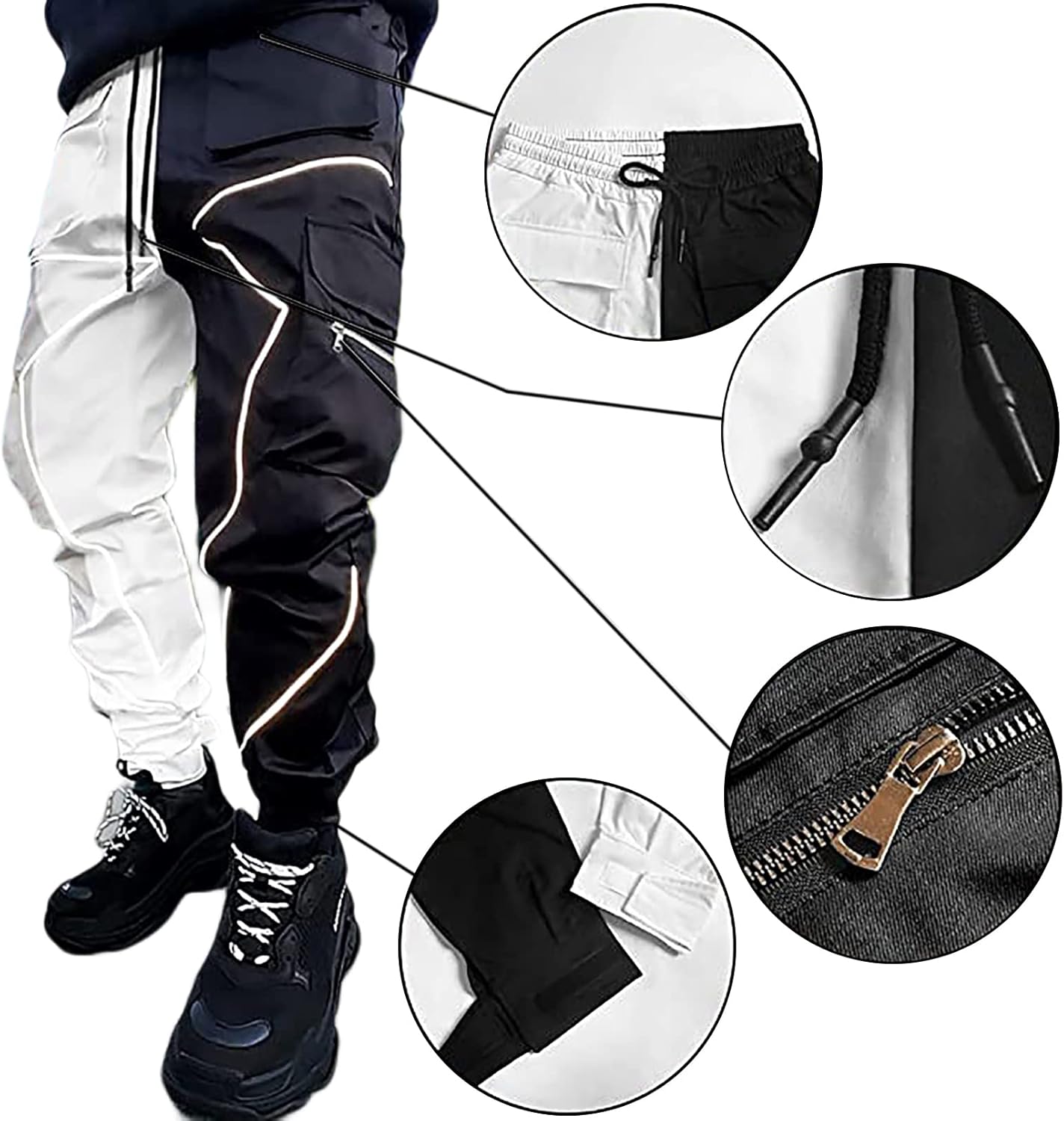 BOOMLEMON Men's Cargo Jogger Pants Reflective Technical Hip Hop Harem Pants Punk Streetwear Tactical Track Pants