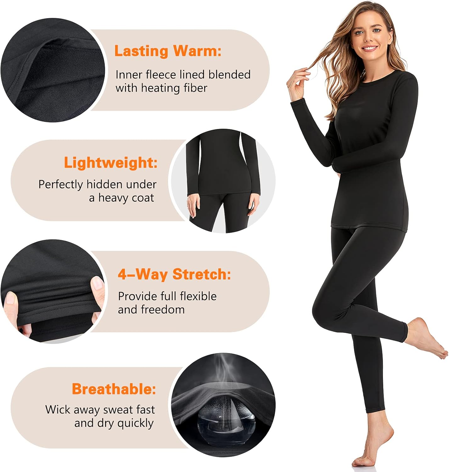 [Light & Formfitting]: The womens long underwear is lightweight and ultra-soft to become second skin to fit and warm you. You'll have no burden under a heavy coat when cold. Lying on a sofa at home, working in office suits, or going hiking outdoors, suitable and comfortable wearing experiences let you say goodbye to winter cold.