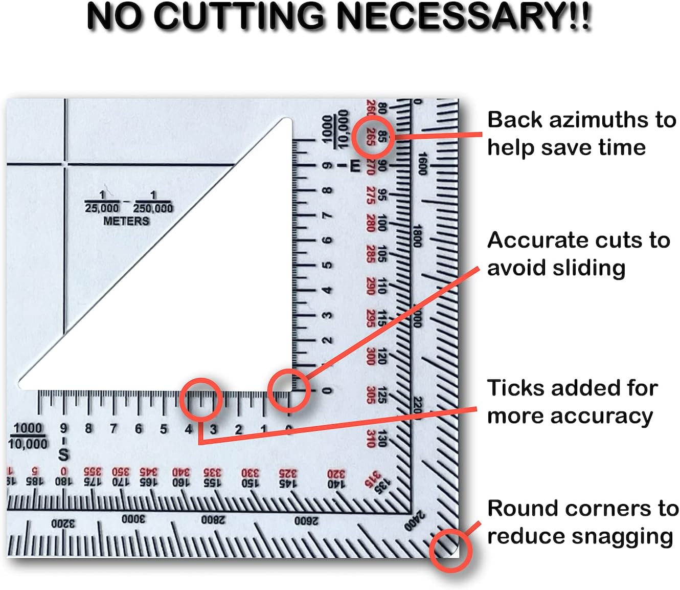 ACCURATELY CUT - What sets this protractor apart from most are the accurately cut triangles, giving you increased accuracy during land navigation.