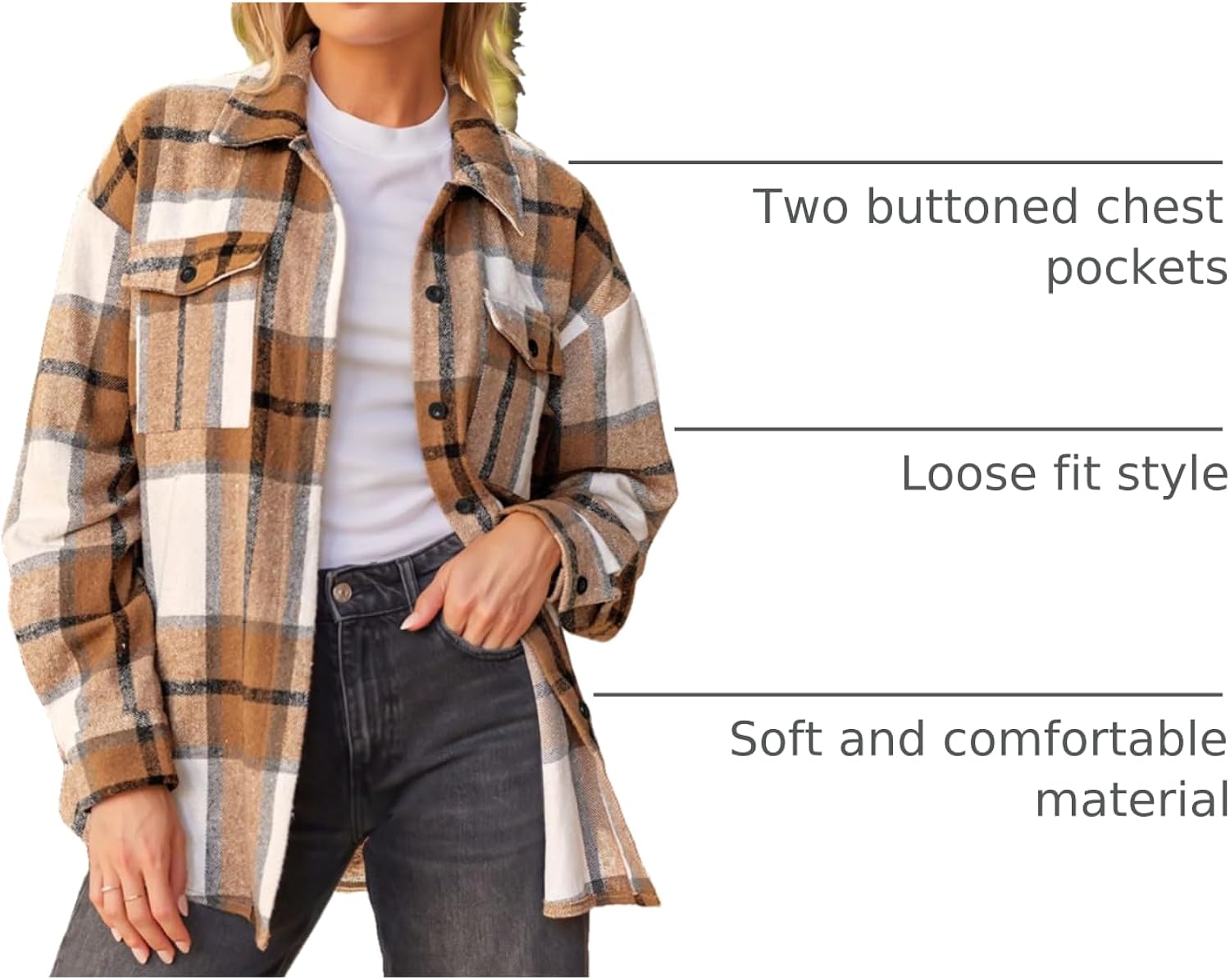 Season:This flannel shacket jackets suits for spring,fall and winter,you can match it with everything you like to enjoy your life