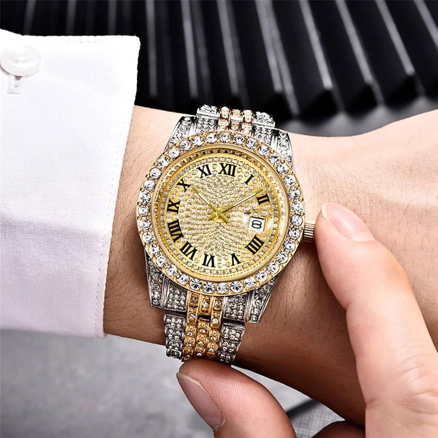 SENRUD Men's Diamond Watch Fashion Crystal Rhinestone Quartz Analog Watch Iced-Out Bracelet Wrist Watch