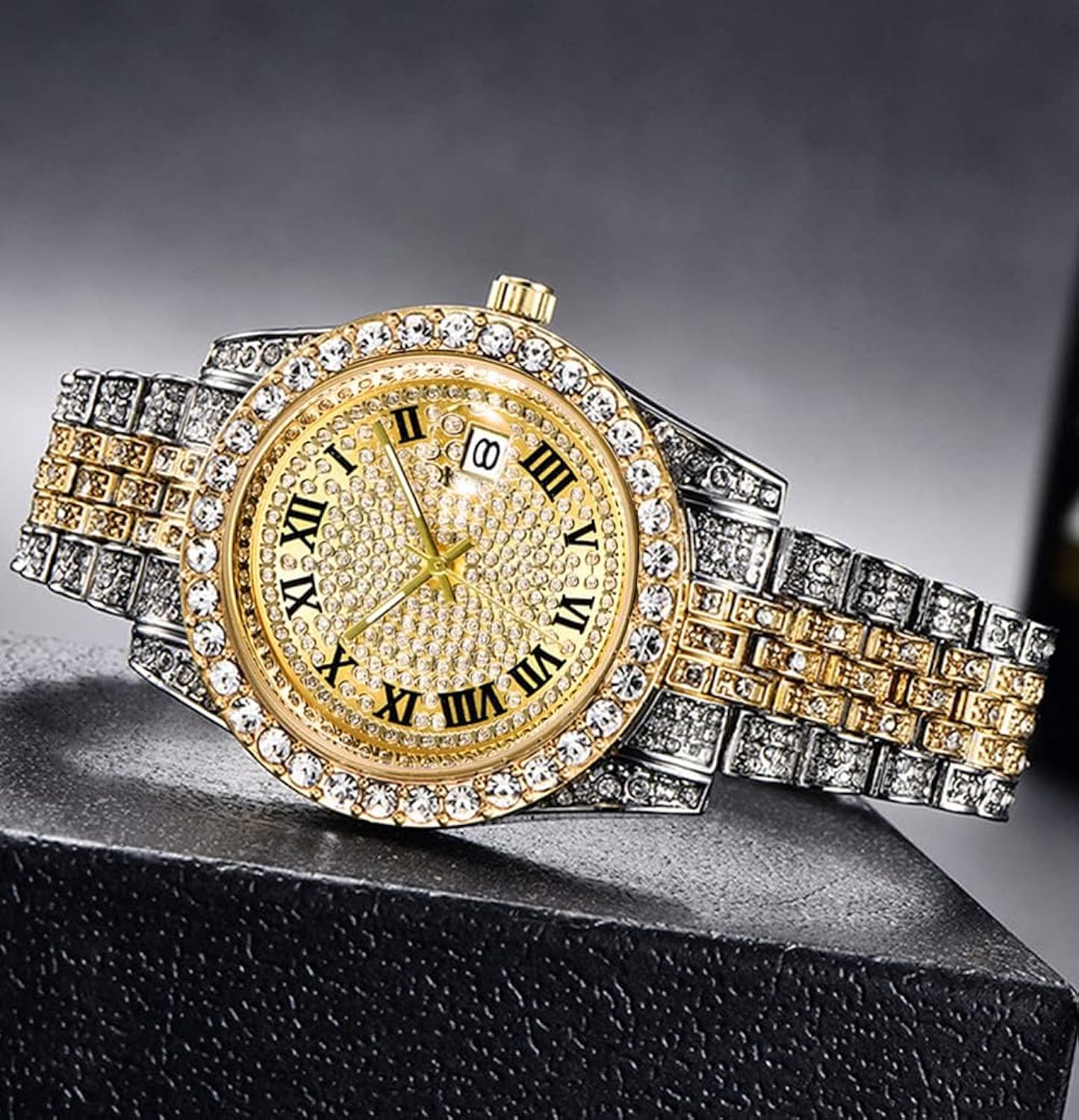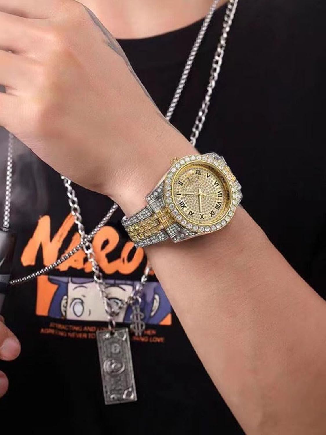 It's Unique Round Watch Case is inspired by what all rappers are wearing!The of watch set with bling-bling rhinestone, which is gorgeous!