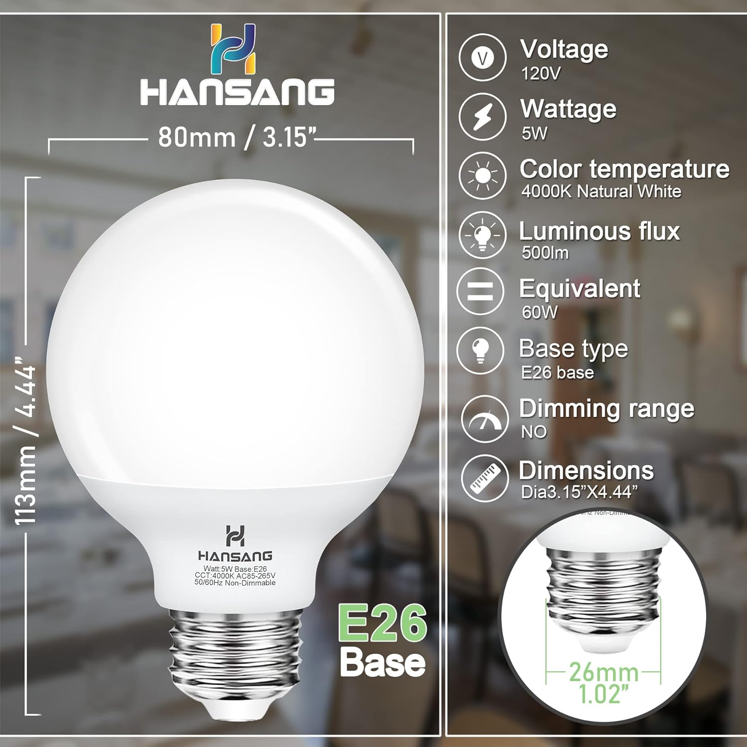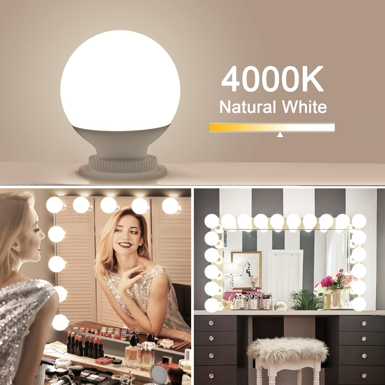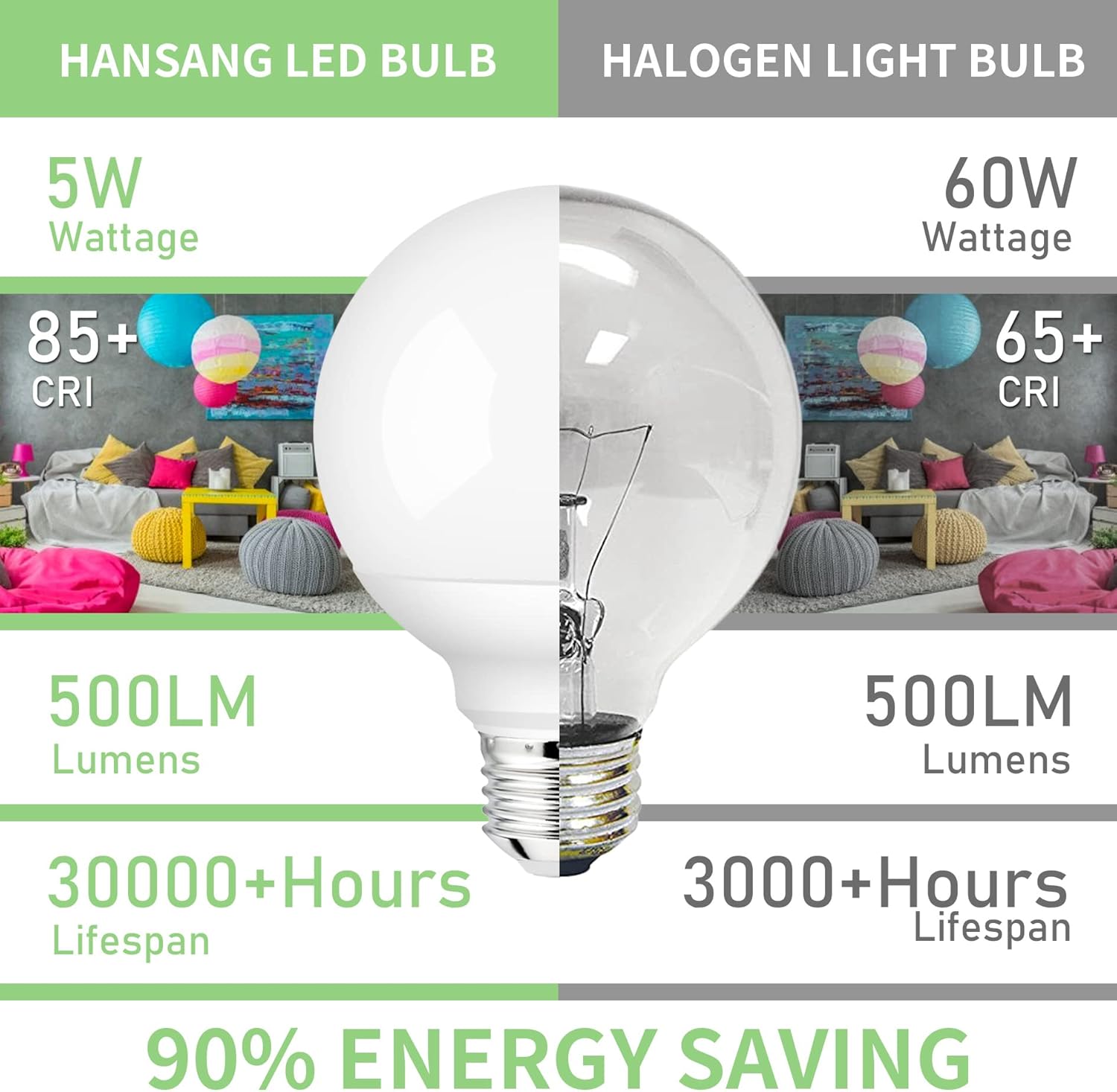 Excellent Performance Vanity Globe Bulbs:Provide clear high CRI lighting. At 4000 Kelvin, the light bulb provides 500LM and comfortable colors, which is an ideal choice for the ambient light of the whole room and mirror headlights.
