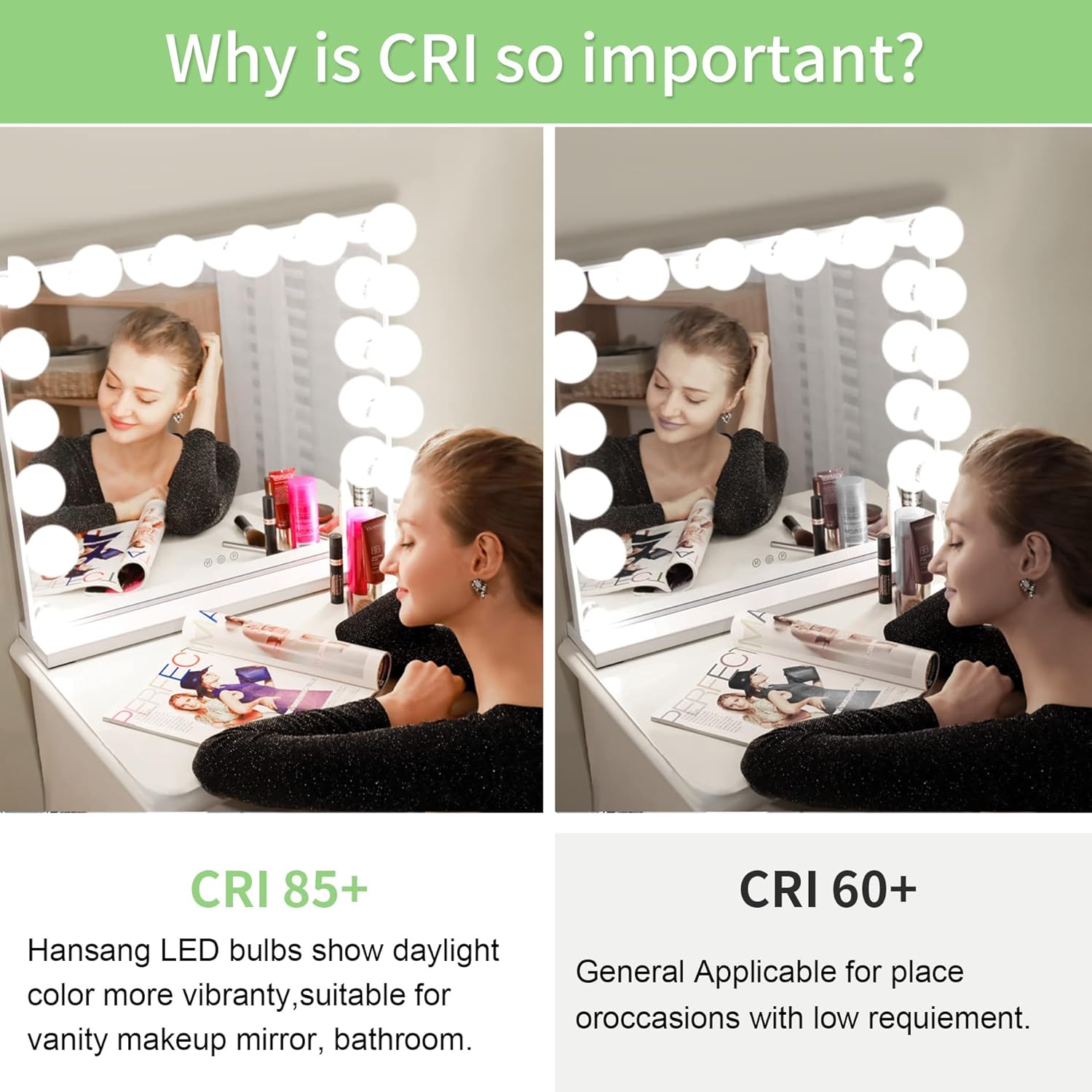 Makeup Mirror Light:Are you still worrying about the lack of natural light? The makeup looks too different indoors and outdoors? This bulb provides clear CRI 85+ lighting and emits a natural white light, allowing you to see the true color of eye shadow on your face.