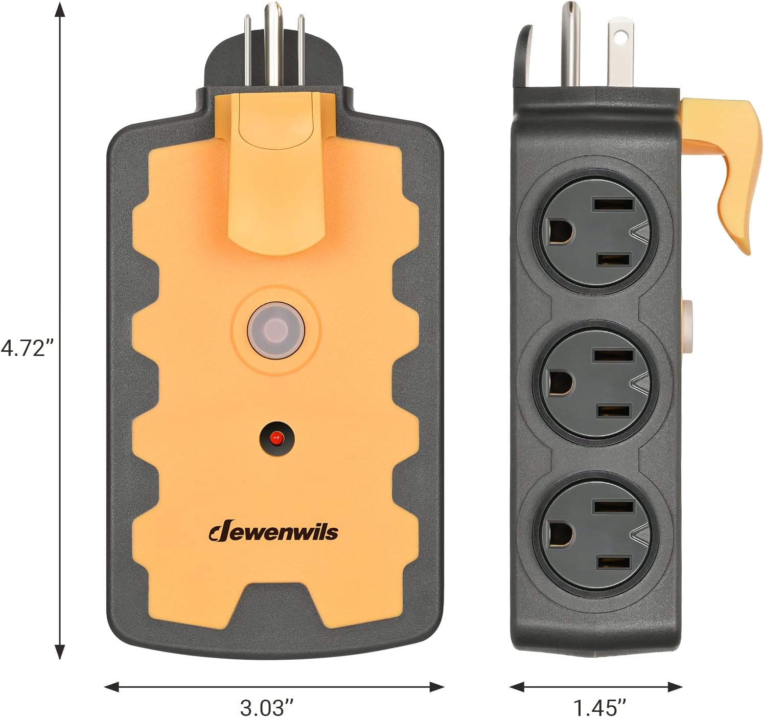 【6-Grounded Outlets】 The outlet extender fits with any indoor, outdoor extension cord well, great to expand one outlet to six in work places. 6 outlets (125V/15A/1875W) arranged in 2 sides with wide space, allows you use bulky adapter plugs in workshop