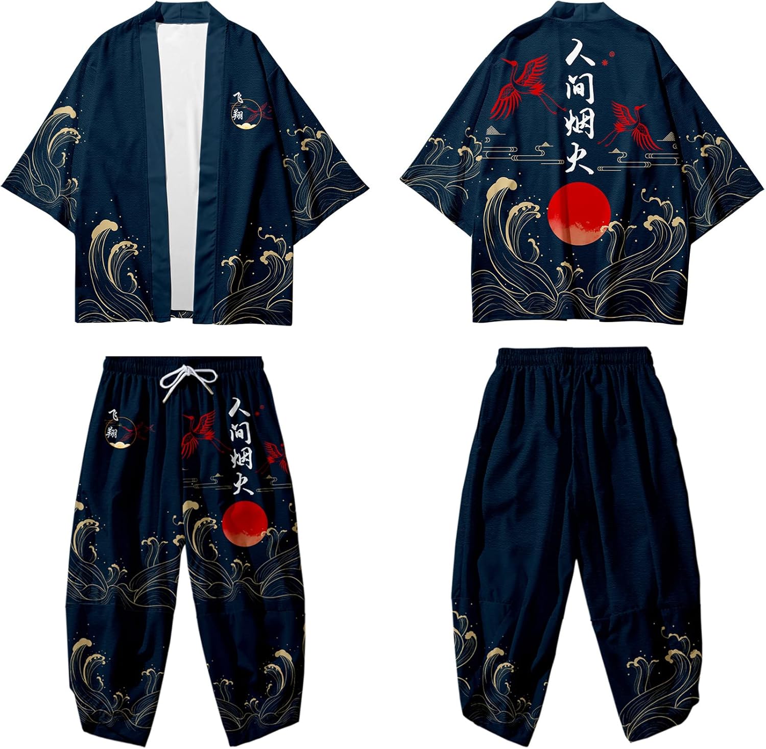PRIJOUHEMens Japanese Kimono Coat Suits Loose Open Front Seven Sleeve Kimono Cardigan Jacket with Shorts4.3 out of 5 stars227 227 customer raitings $38.99$3899