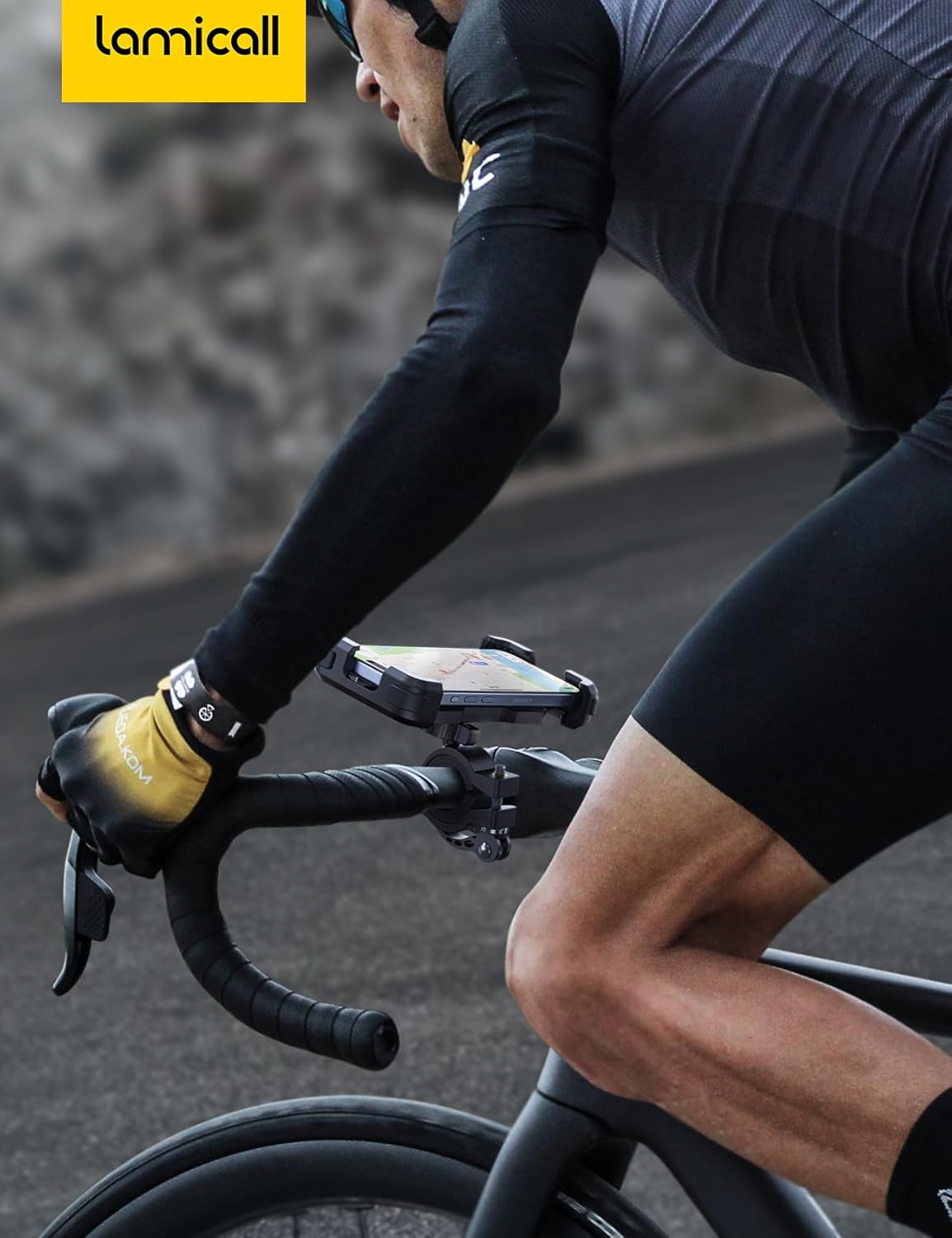 【 Wide Compatibility】 Universal bike cell phone holder in 4.7 to 6.8 inches with thickness up to 15mm (including phone case), like iPhone 16 Pro Max, iPhone 16 Pro, iPhone 16 Plus, iPhone 16, iPhone 15, iPhone 15 Plus, iPhone 15 Pro, iPhone 15 Pro Max, iPhone 14 Pro Max, iPhone 13 Pro Max, iPhone 12, iPhone Xs Max, iPhone X, iPhone 8 Plus 7 6s 6, Galaxy S10 + S10e S9 S8, Note 9, LG and other cell phones. The max height/ width of the phone clamp is 6.61" (168mm)/ 3.11" (79mm), for Galaxy S21 ultra and S22 ultra when they have a case, it may can't fit.