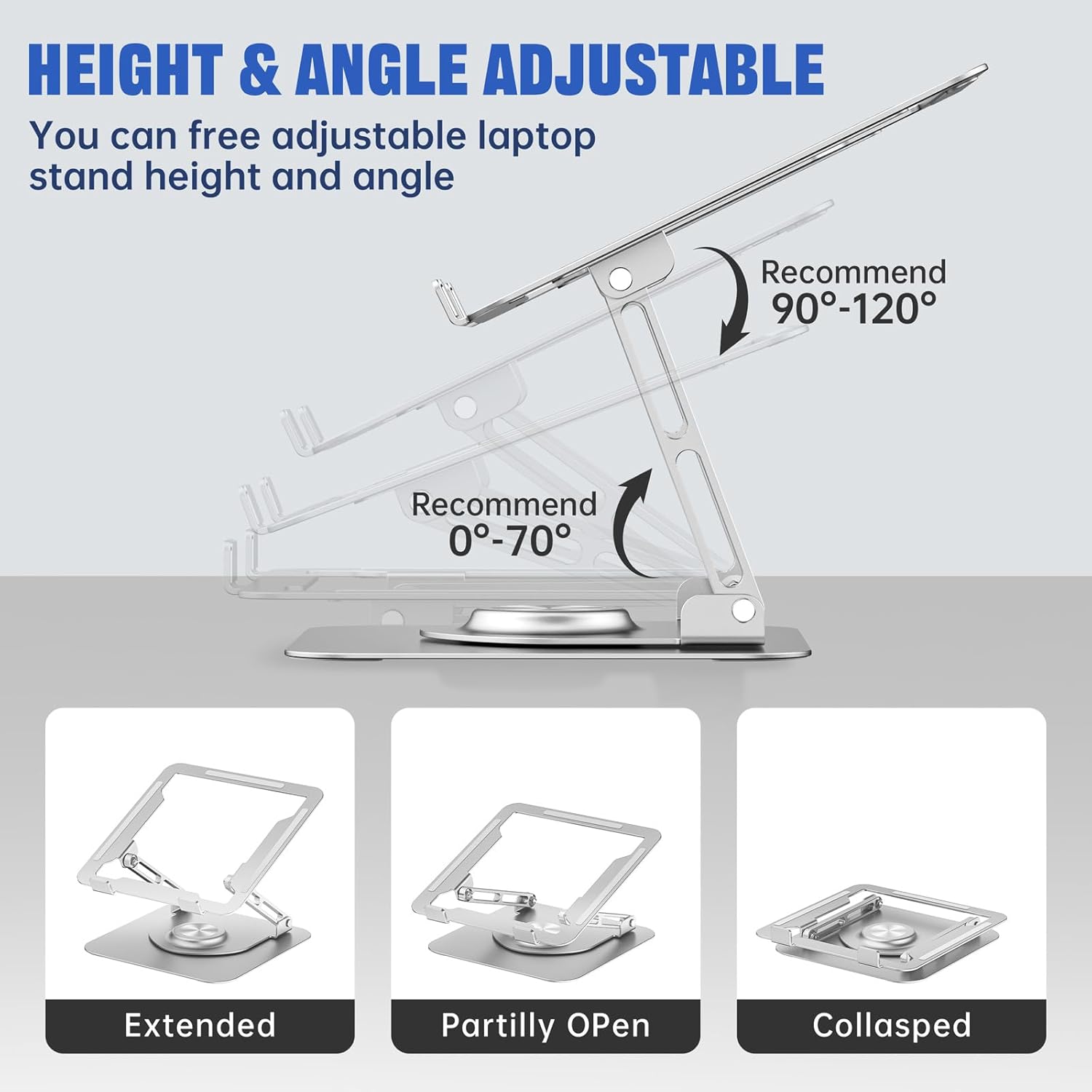 JOYEKY Laptop Stand for Desk, Adjustable Computer Stand with 360° Rotating Base, Ergonomic Laptop Riser for Collaborative ...