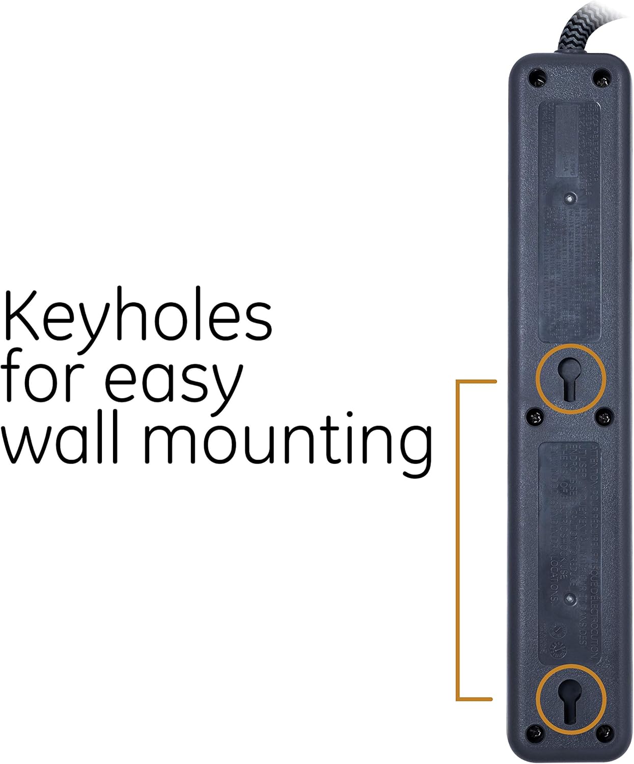 Power more - Expand the reach of your outlet to power all your devices in one convenient location, either on the floor or on the wall thanks to the wall mount Keyholes of the GE ultrapure 6 outlet surge protector