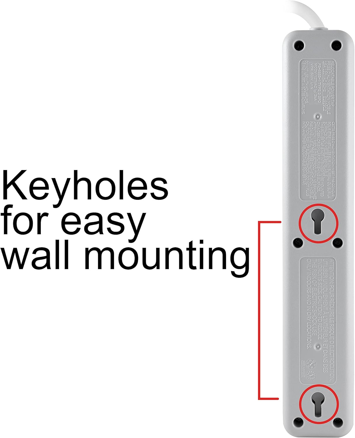 Functionality – Included keyhole slots make this unit easy to mount to a desk, table or counter. A reset switch puts power at your fingertips for easy control of your electronics.