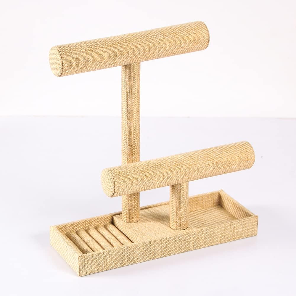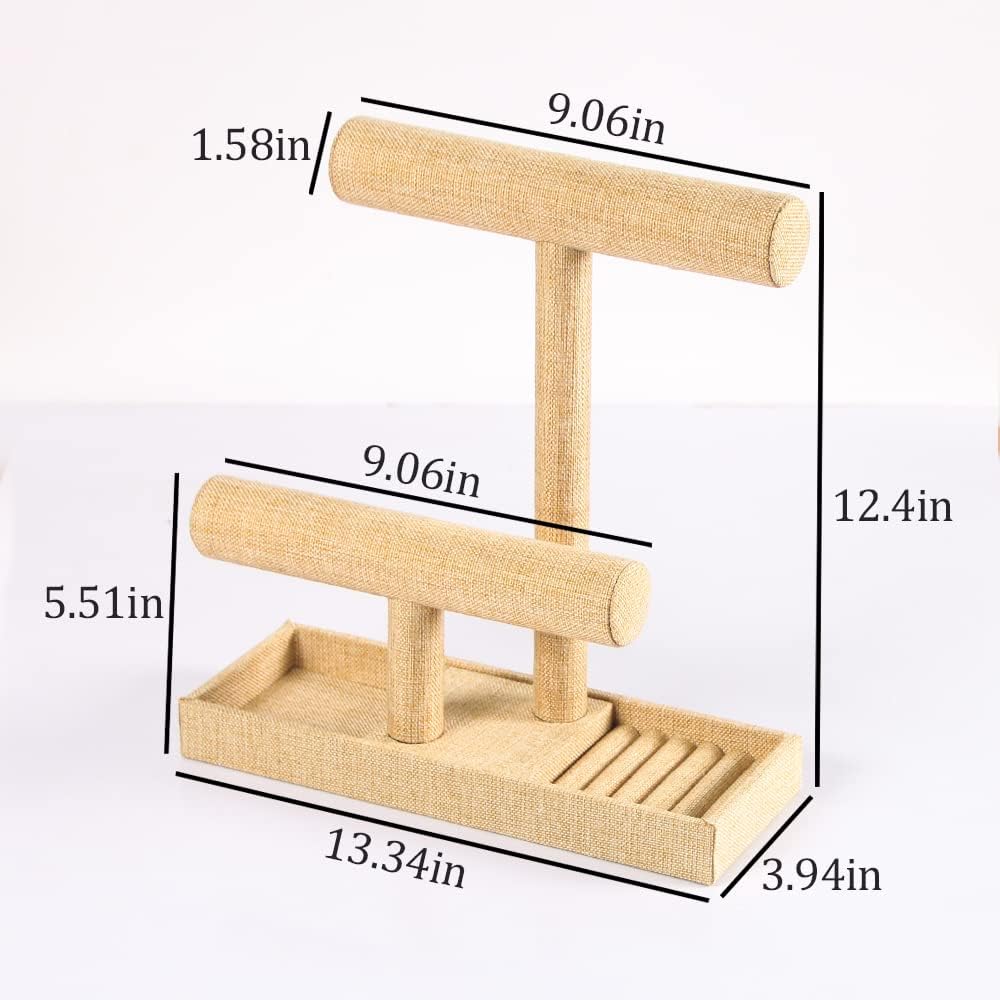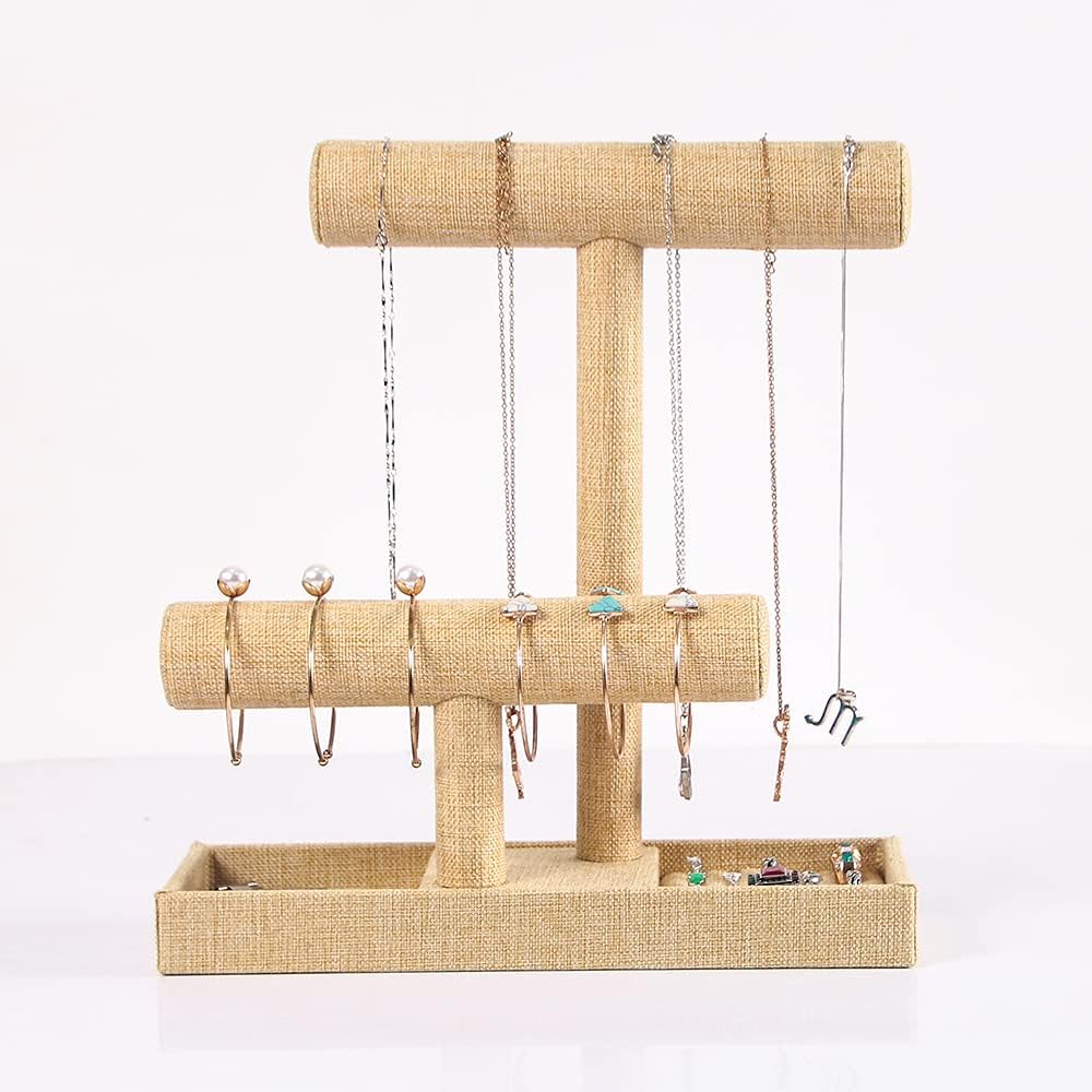 Coward 2 Tier Necklace Bracelet Holder Organizer with Ring Tray, Linen Jewelry Display Stand for Watch Scrunchie Lipstick,...