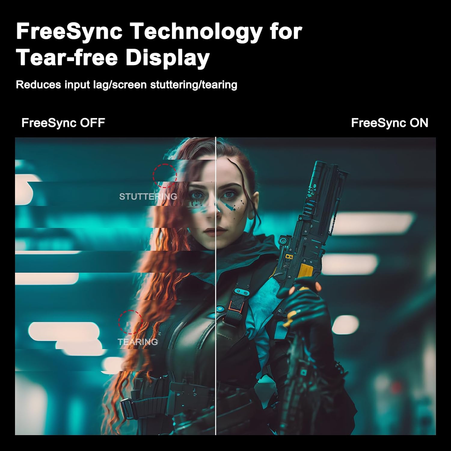 Display: up to 100hz refresh rate(when your device supports) | 1000 : 1 Contrast Ratio|300nits Brightness|16.7M Display Colors|NTSC 72% Color Gamut|178°Wide Viewing Angle|Free Sync
