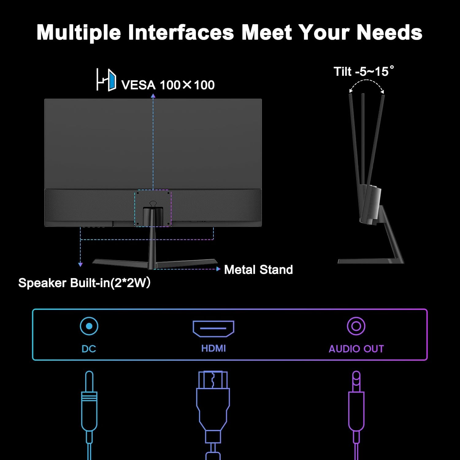 Ergonomic design: -5° to 15° Tilt|VESA Mounting Compliant (100 x 100mm)|Ultra-thin Bezel|Anti-Glare|Anti-Flicker|Low Blue Light|Hard Coating(3H)|HDR