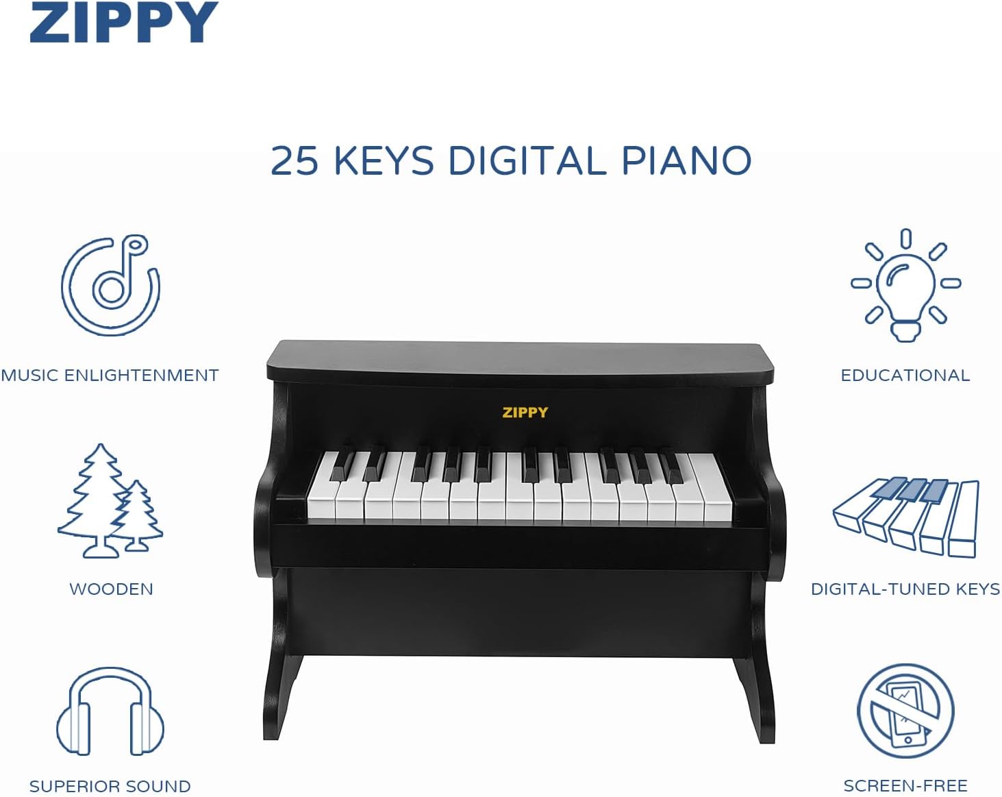 【25 KEYS DIGITAL PIANO】This ZIPPY piano is a miniature upright wooden piano that features 25 keys and 2 full octaves and offers an ideal introduction to music and help children transition to a full-size piano as they grow in age and experience. The sounds are made electronically with precision to eliminate the need for hand-tuning.