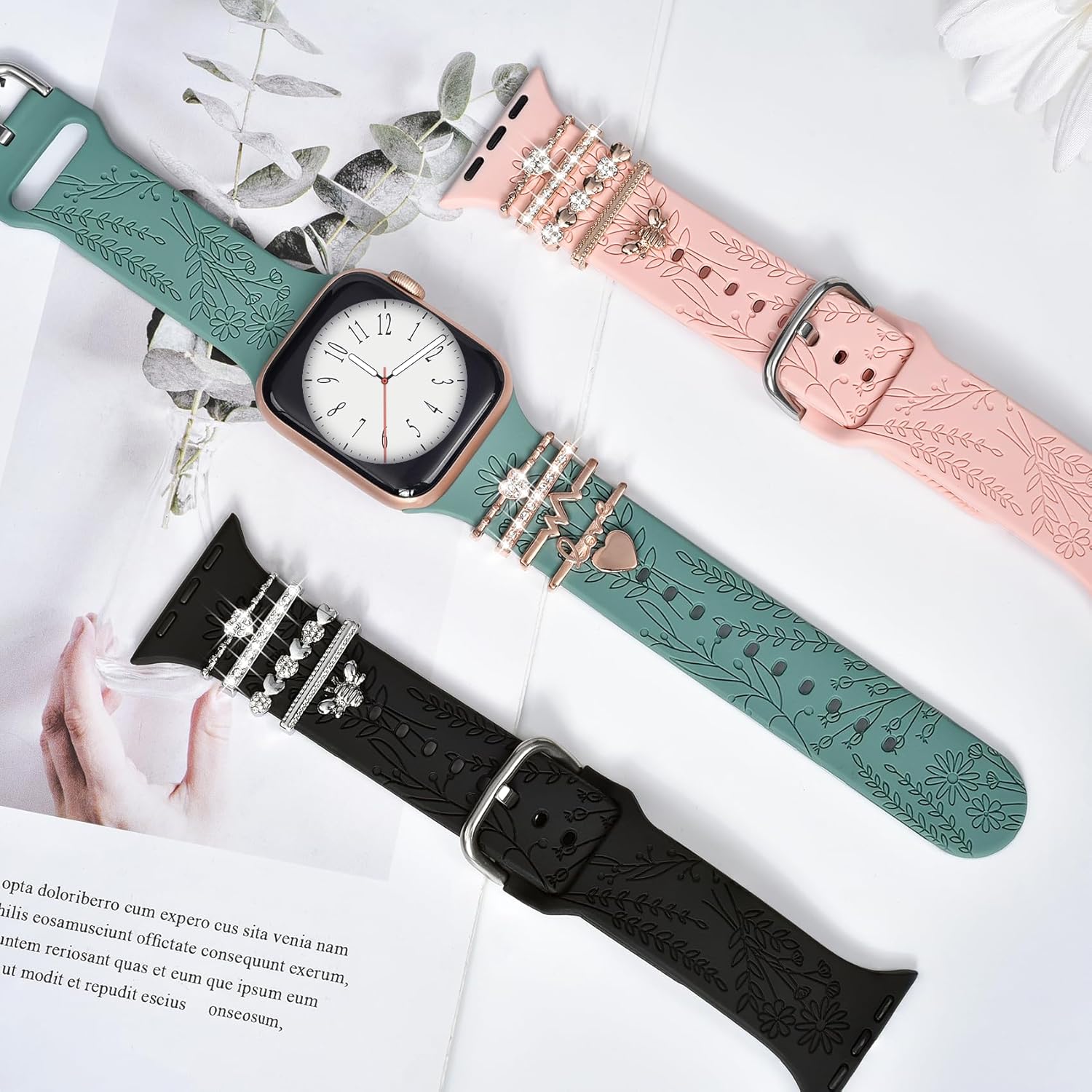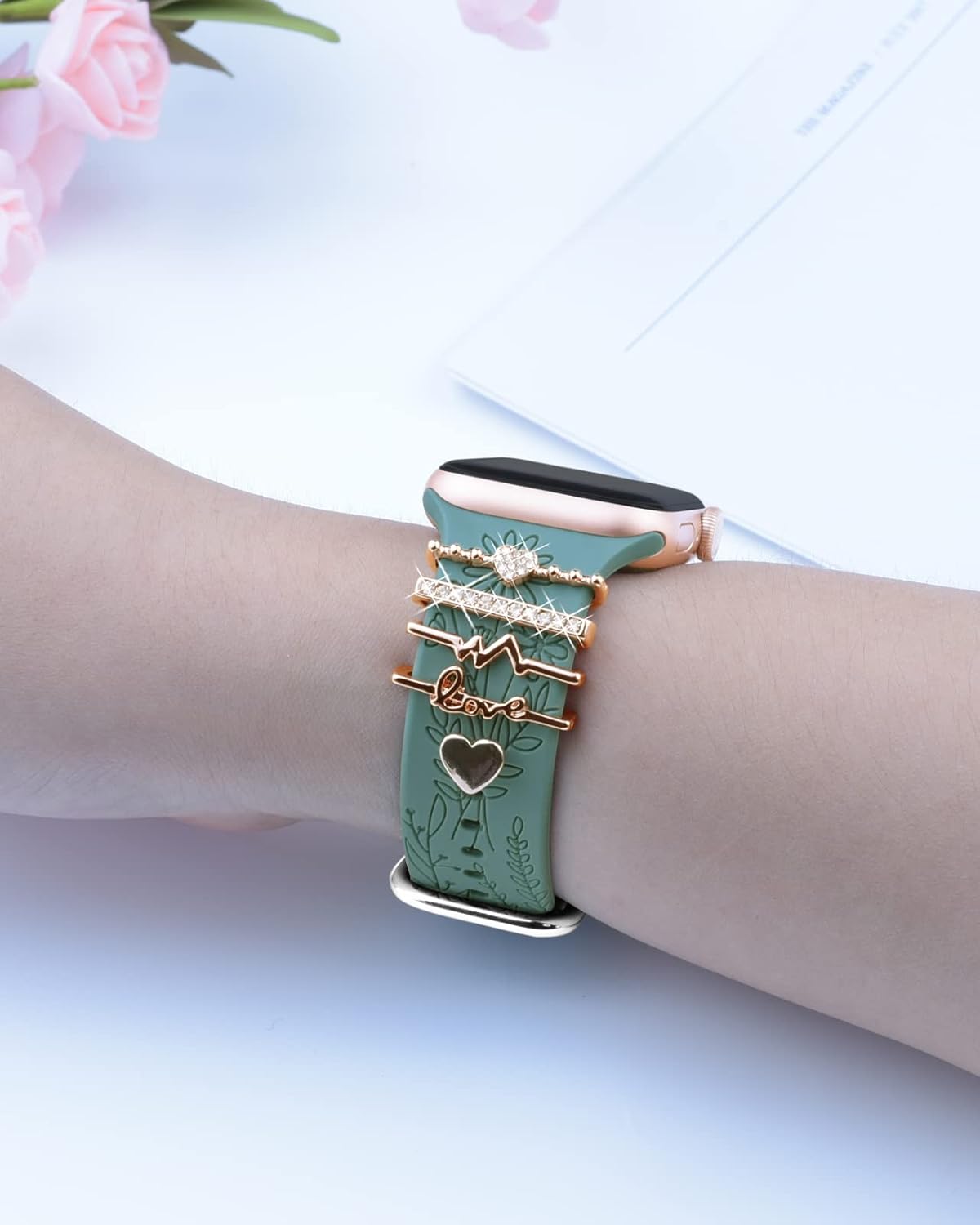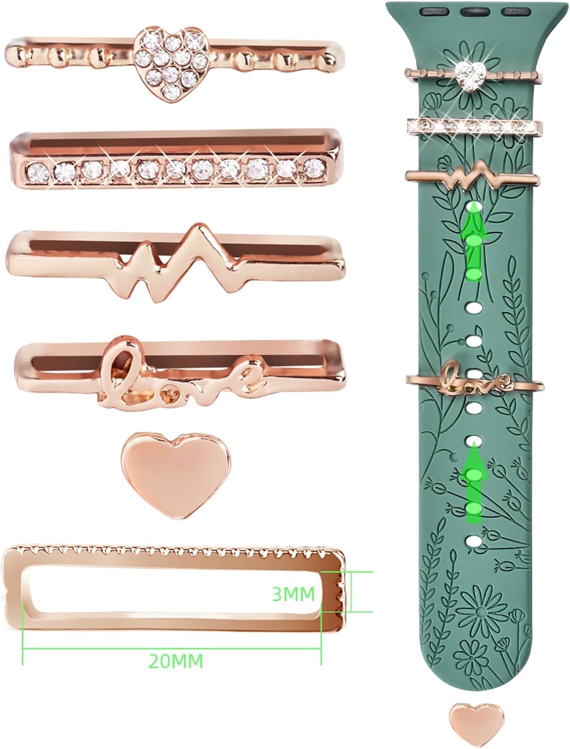 【WHAT YOU WILL GET】Package includes 1 x cute apple watch bands for women, 5 x decorative ring loops. This watch band charms set come with a decent box is also a great gift. If you have any questions, please feel free to contact us.
