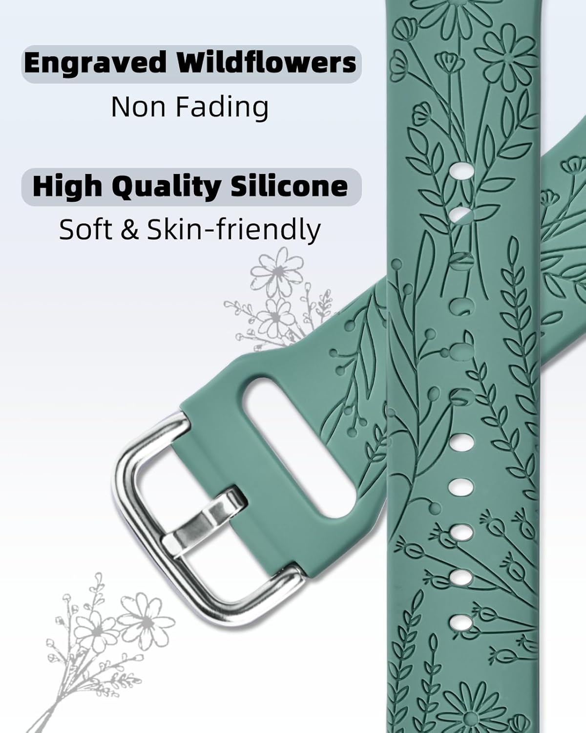 【WILDFLOWER ENGRAVING DESIGN WATCH BAND】 our silicone apple watch band 40mm are chosen with the most popular floral pattern, fashionable, cute and easy to bring you more compliments in any occasion. The engraved apple watch band is made of high quality silicone, soft, breathable, lightweight, washable and non-irritating to your skin, bringing you a great wearing experience.