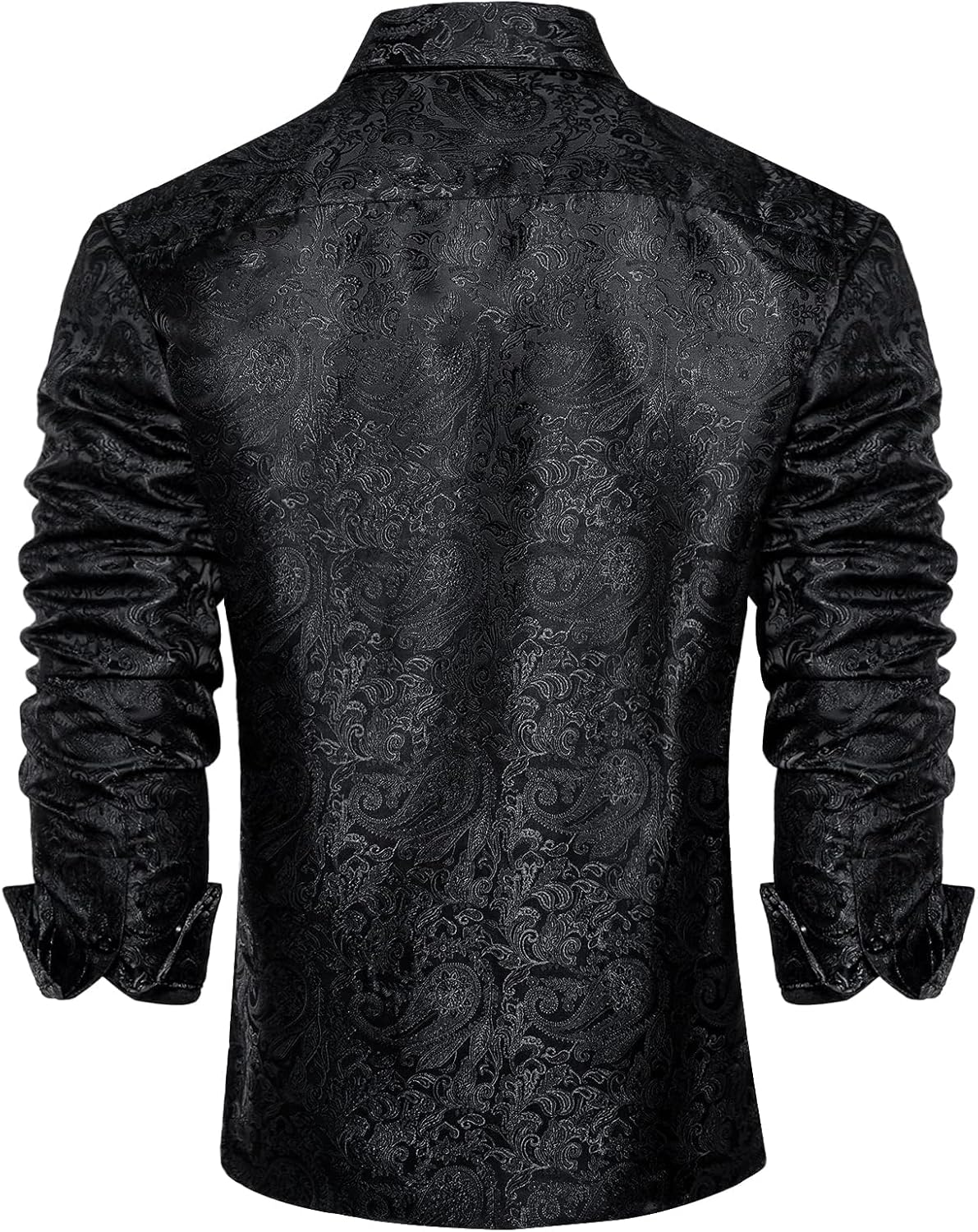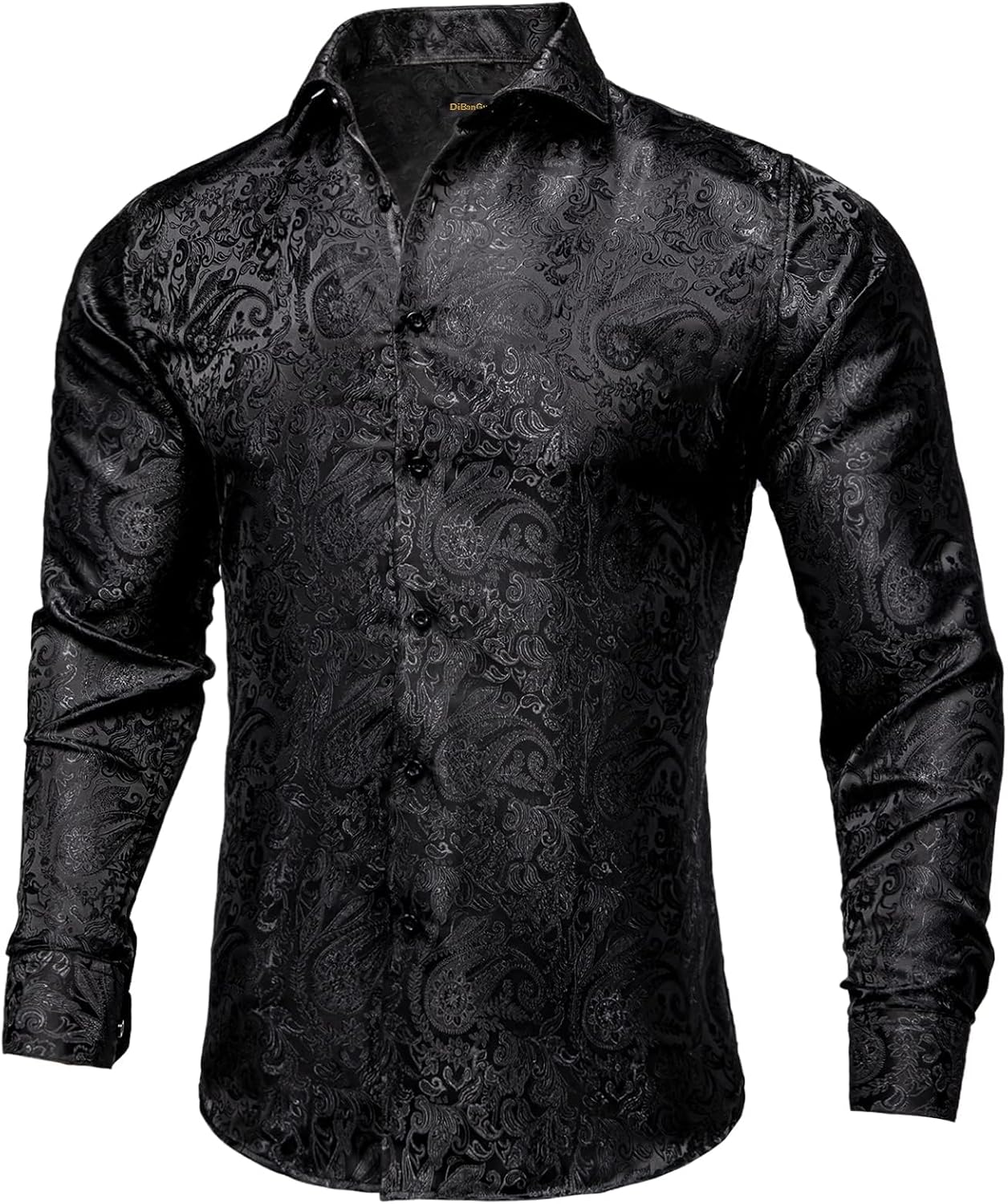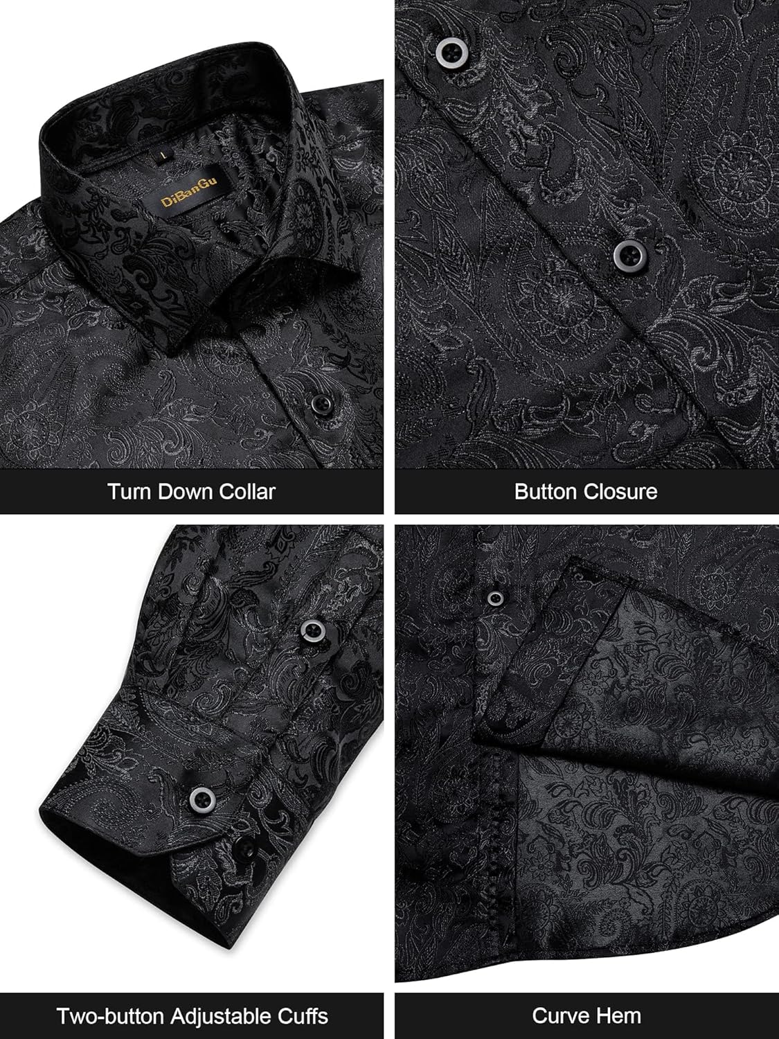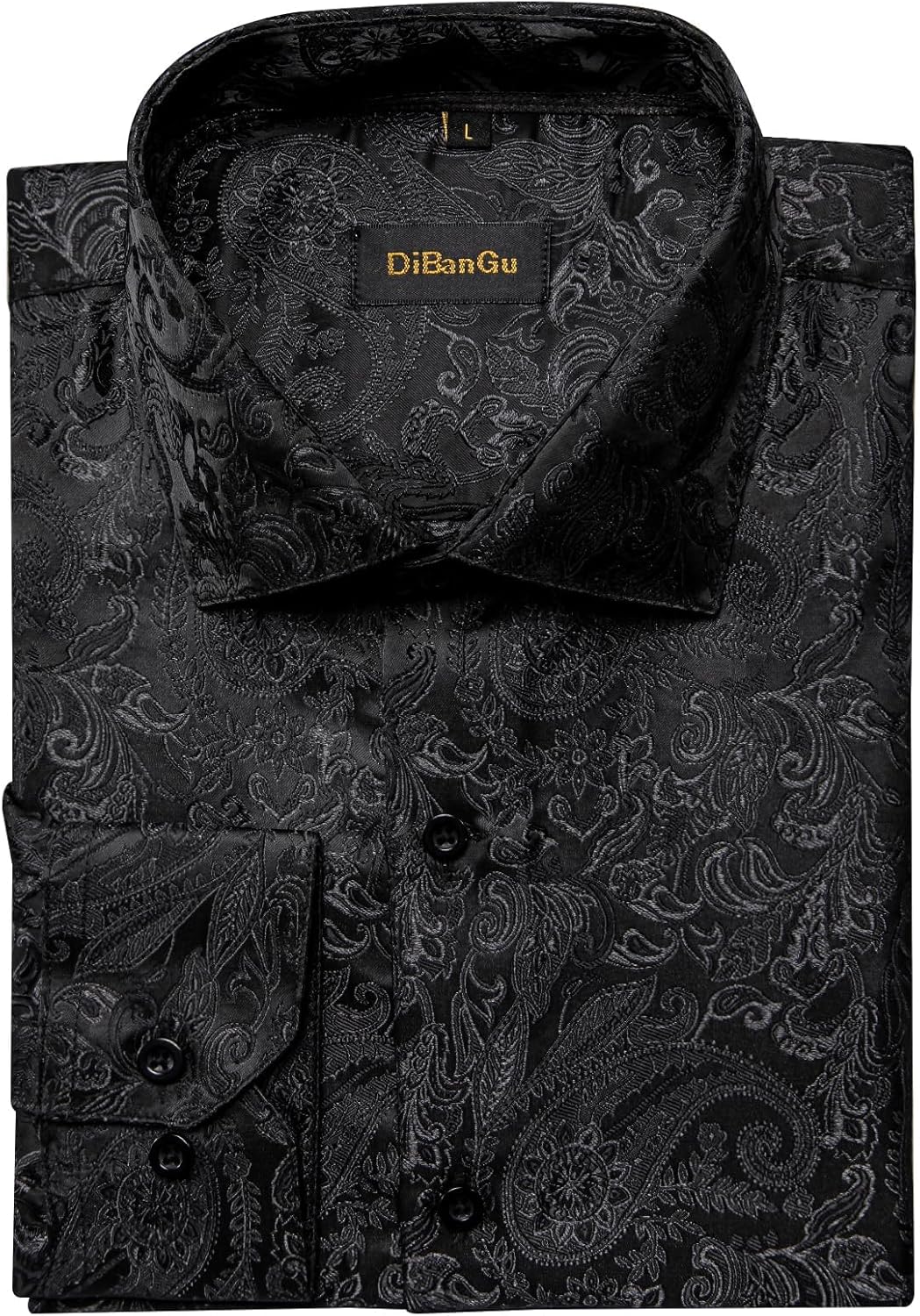 DiBanGu Mens Silk Paisley Dress Shirts,Long Sleeve Button Down Shirt Casual Regular Fit Shirt for Men Wedding Party