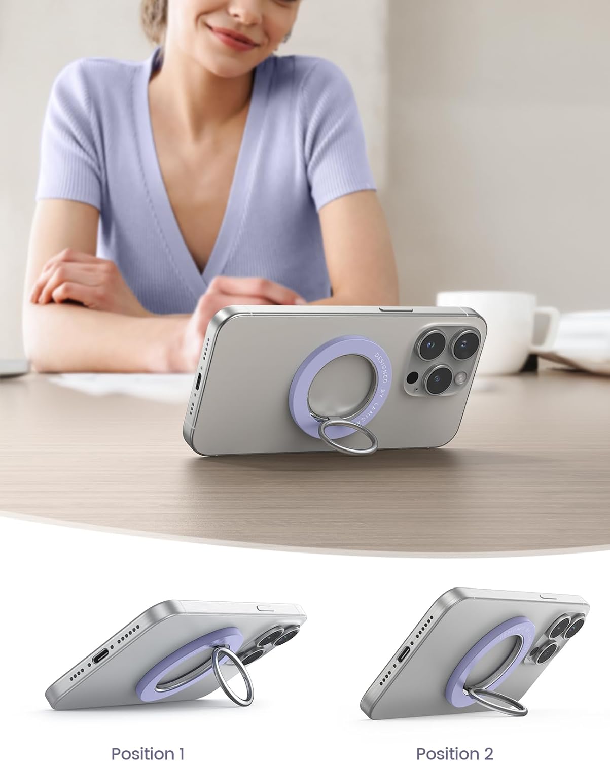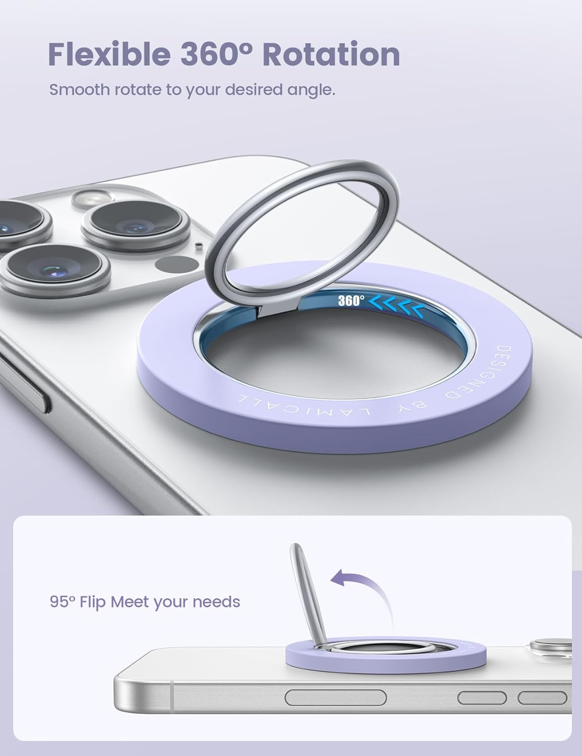??【Multi-functions】Lamicall iphone magnetic ring can be used as a mag safe phone grip, desk top kickstand. Easy to operate the phone with one hand, hold the phone firmly and reduce the risk of accidentally dropping down.