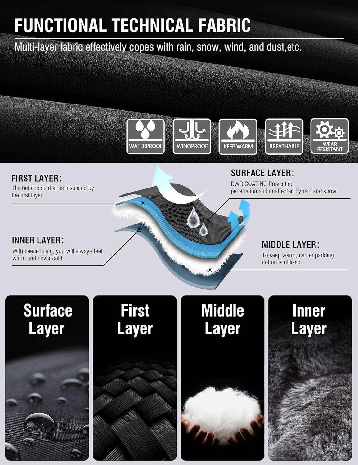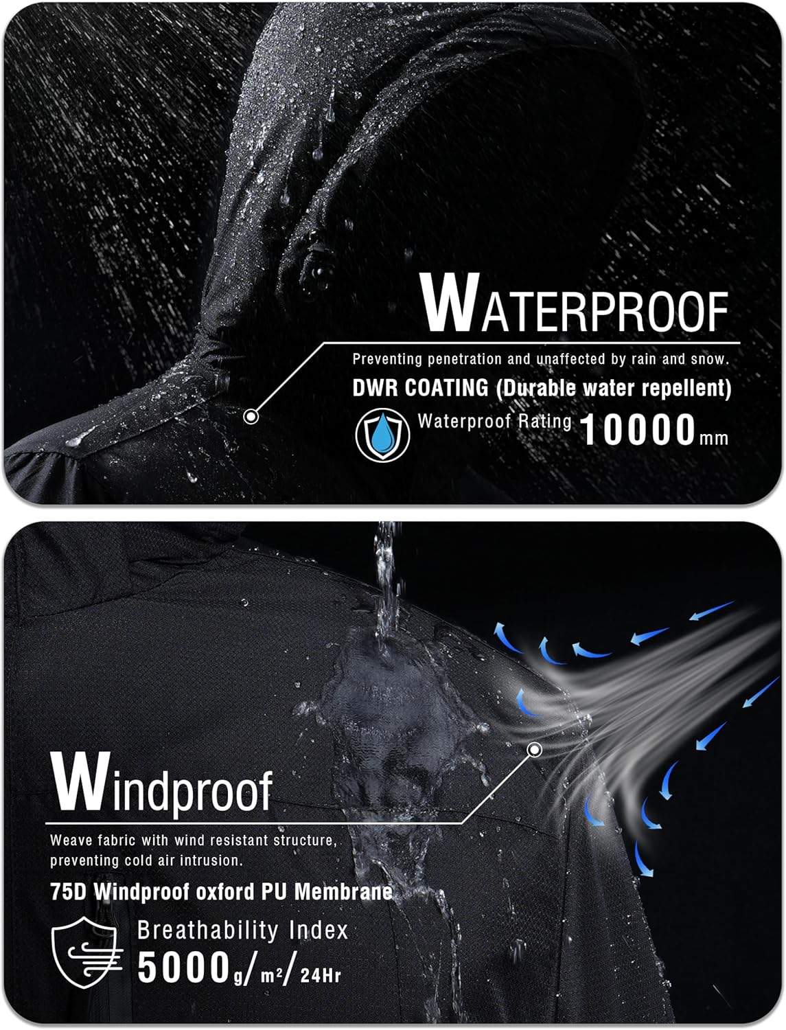 Waterproof & Quick Dry Winter Coats for Men: Our winter jacket with a professional water repellent coating and has a waterproof level of 10000mm. The zippers are also waterproof, so you don't have to worry about getting wet while skiing, snowboarding, or in rainy weather.