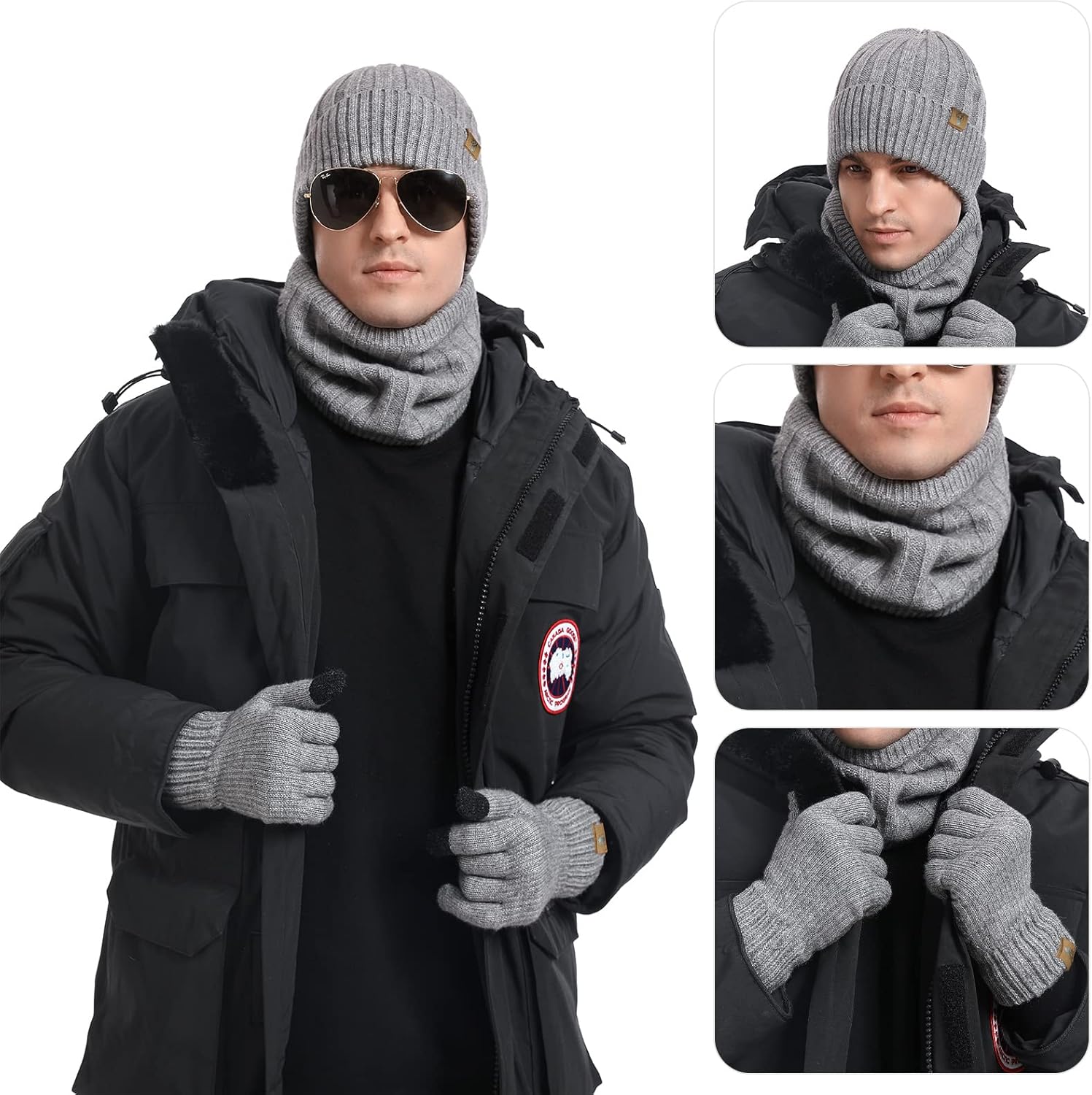 Wide application mens hat and gloves set-- 3 pieces scarves for men set for daily party, great for outdoor sports like snowboarding, running, skating, biking, snowshoeing, skiing, hiking or any outdoor activities & travel. Also you can present this perfect winter knitted scarf set to your relatives or good friends as gift for christmas thanksgiving day new year