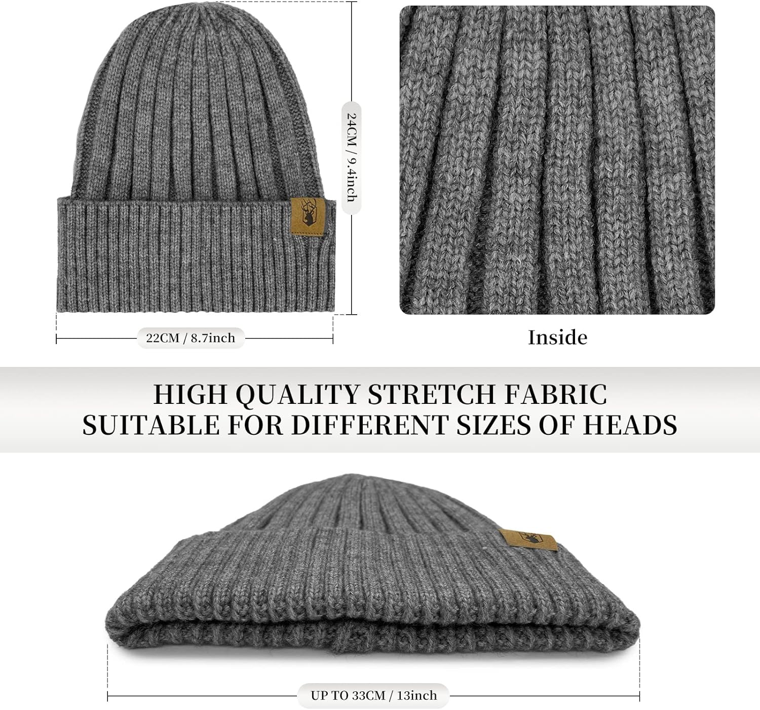One size fits most winter scarf for men skull cap warm gloves set -- beanie hat : 9.64"*9.84" neck warmer: 10.23"*8.49" touchscreen gloves: 9.65"*4.13" the elastic cuffs of winter full finger gloves for men can prevent wind from entering effectively.