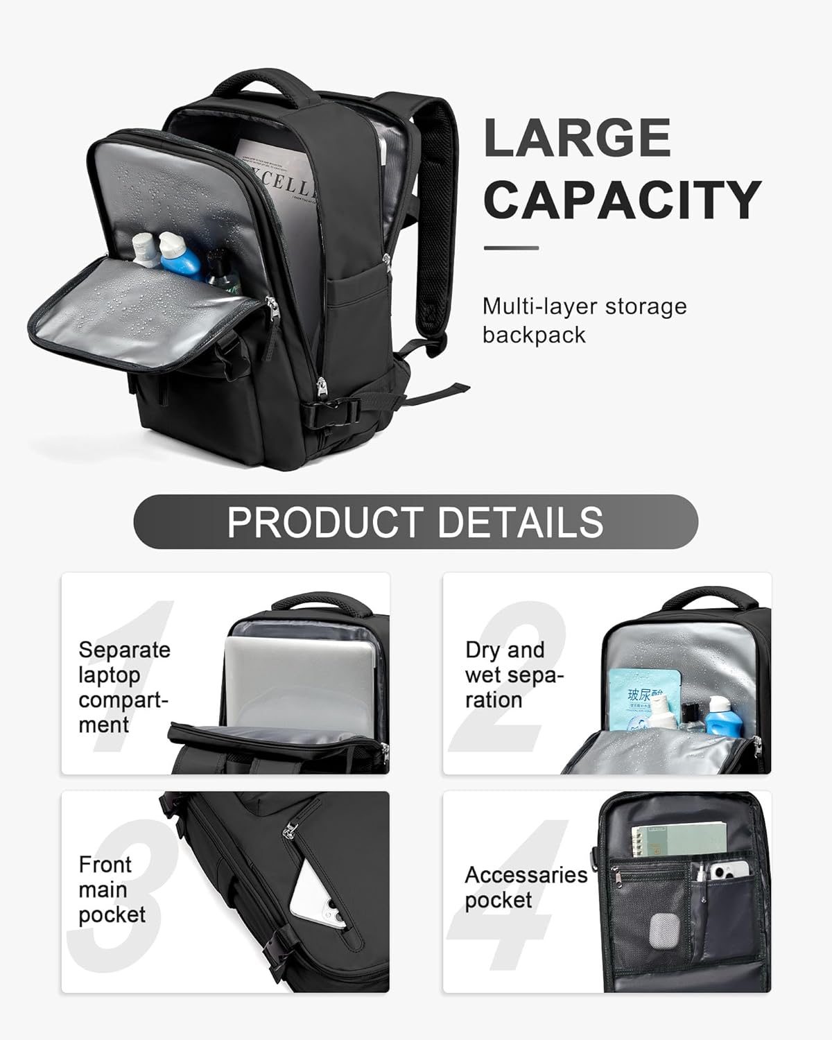 WONHOX Large Travel Backpack Carry on Flight Approved Laptop Work Business Backpack for Women Men Mochila de Viaje