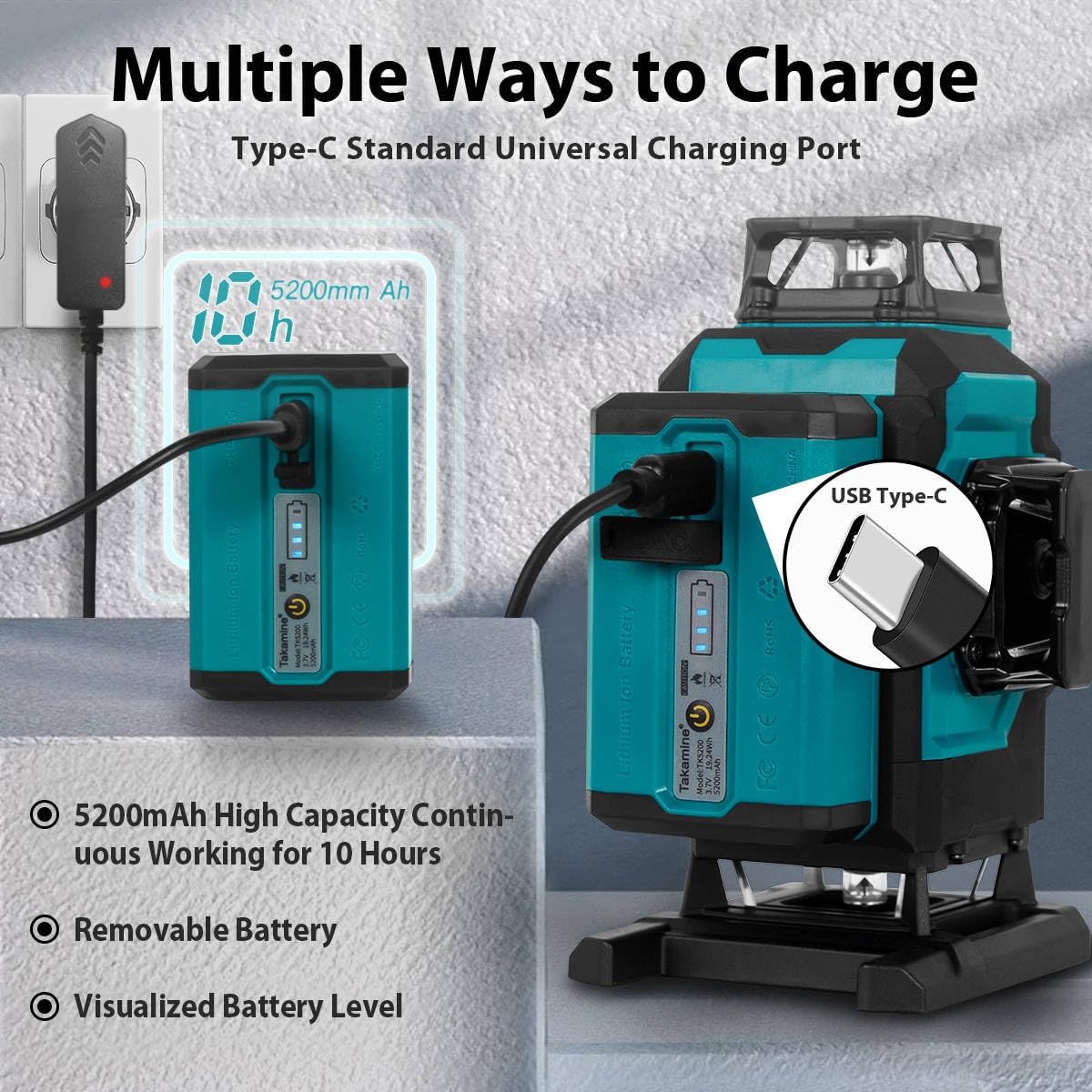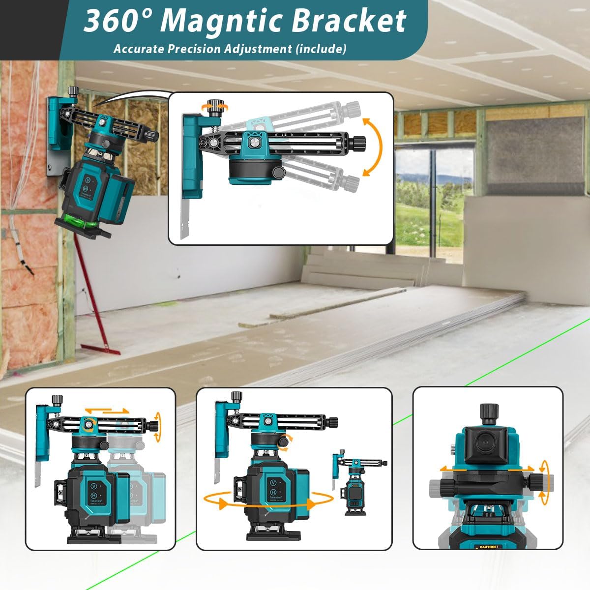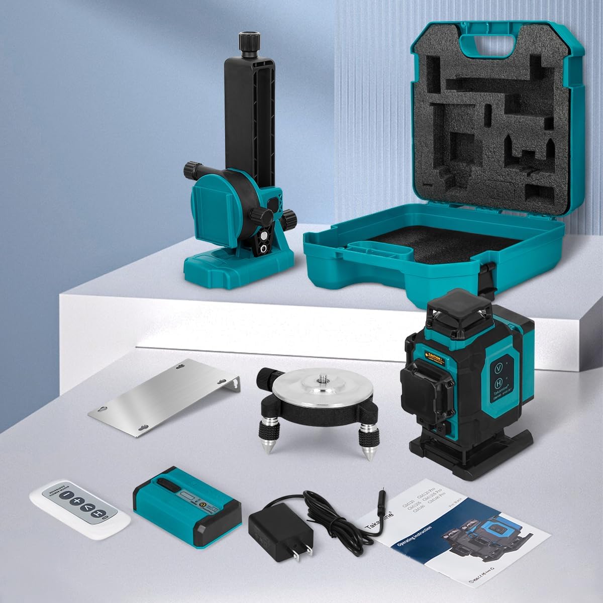 Durable design and packaging content: IP54 waterproof/dustproof to ensure that you can work normally and stably under complex working conditions. The surroundings are protected by TPR soft rubber, which is shock-resistant, abrasion-resistant and impact-resistant. The package includes 1x laser level, 1x detachable lithium-ion battery, 1x patented multifunctional magnetic stand, 1x 360° free rotating base, 1x Type-c power cord, 1x power adapter, 1x professional portable storage box, user manual