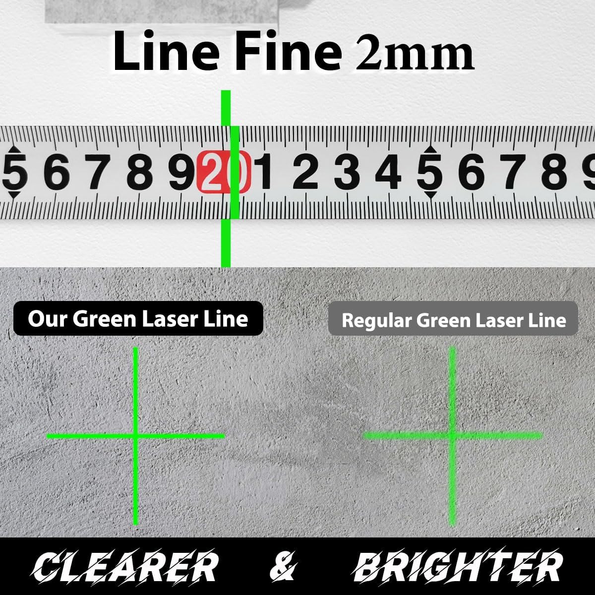 4 X 360° green laser line: Takamine GM160 pro laser level has 2 horizontal 360° planes (the one on the ground can hit a 1/2" ultra-low horizontal line, and the one on the top can hit the lowest 4" horizontal line from the top surface), 2 vertical 360° plane with 16 laser lines can cover the floor, wall and ceiling around the room. The horizontal and vertical lines intersect at an angle of 90° to help you quickly visualize and complete the square layout
