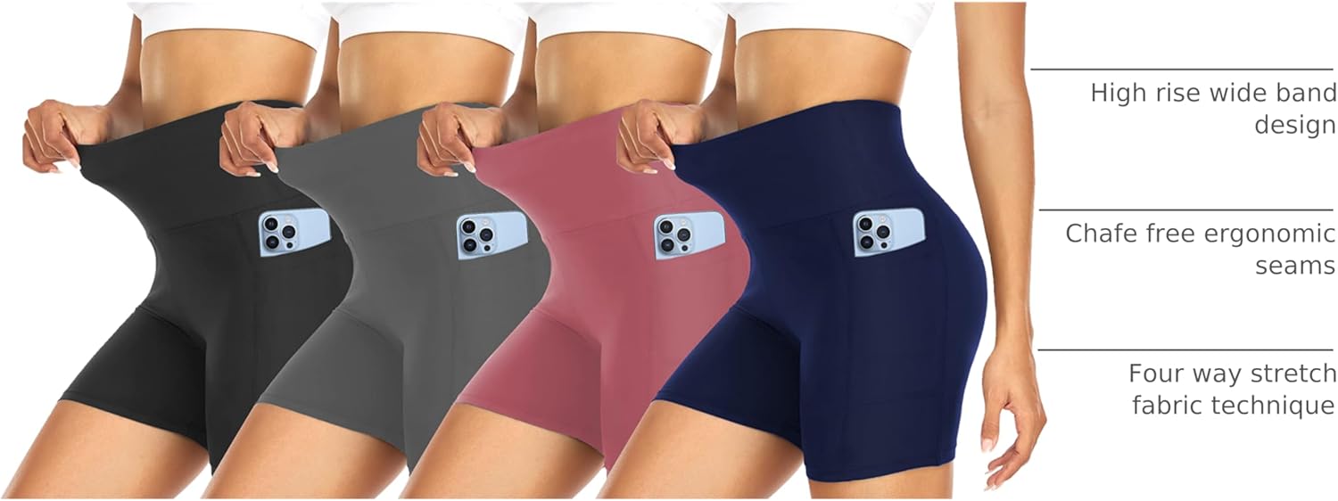 FULLSOFT 4 Pack Biker Shorts for Women with Pockets – 5
