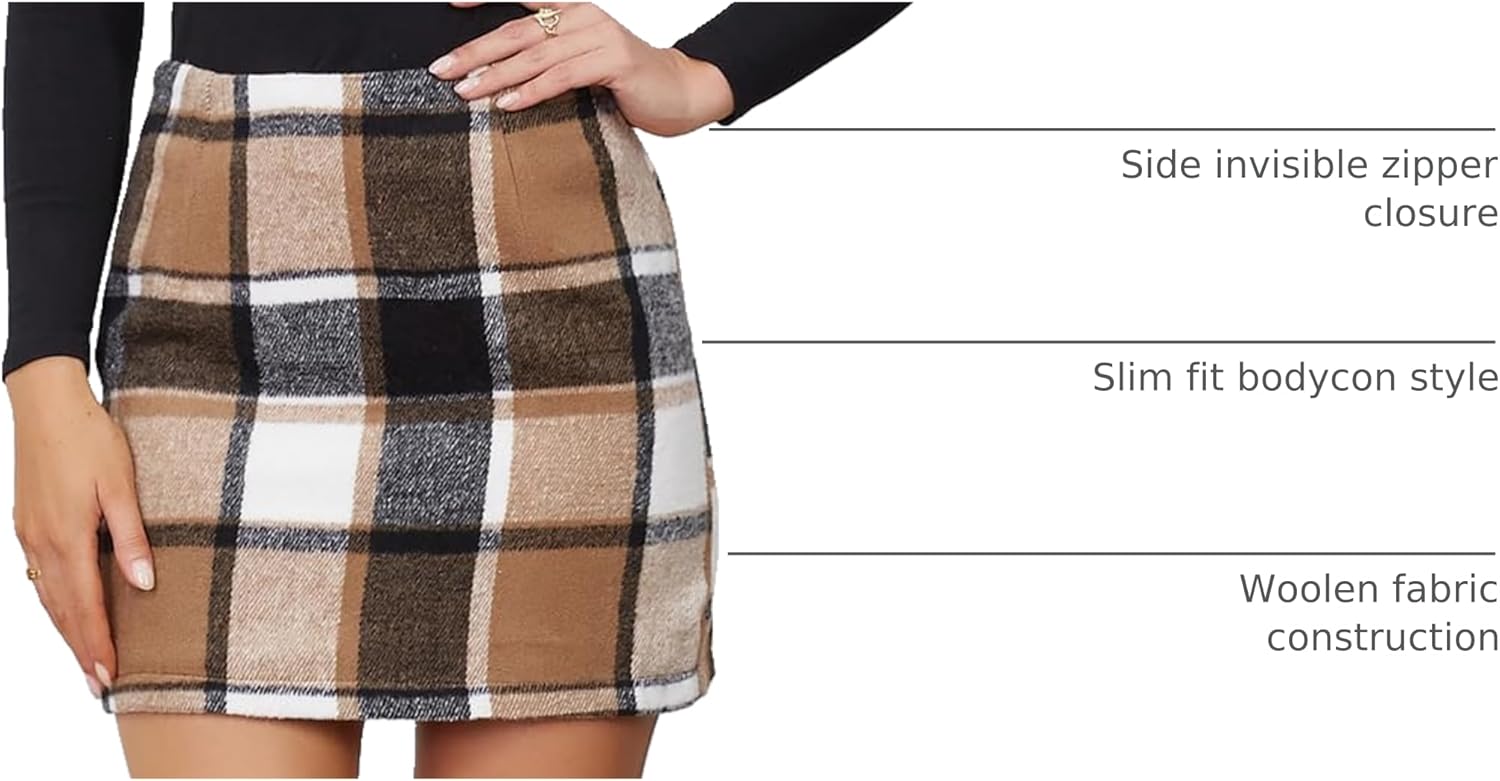 Style: Casual slim fit bodycon flannel plaid mini skirts for junior/lady