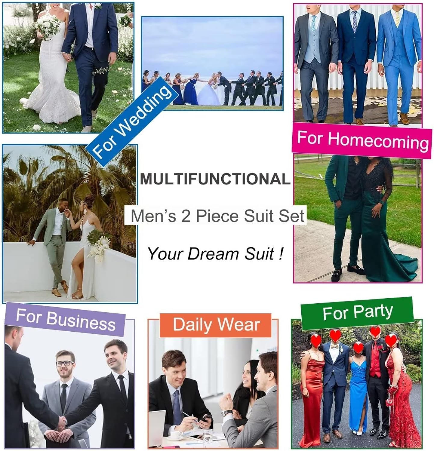 【Multifunctional】: This suit set is suitable for multiple occasions, such as wedding , business meeting, fashion show, party, homecoming, prom, grand holiday or just daily wear.