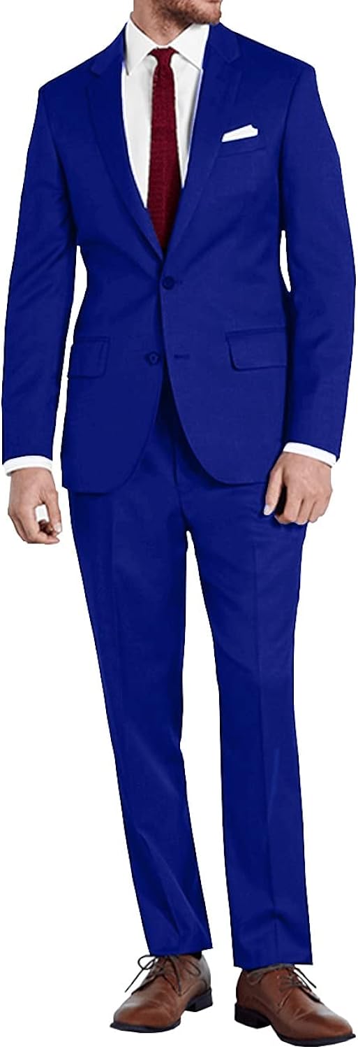 Lynerun Mens Slim Fit 2 Piece Suit Two Button Notched Lapel Solid Suit Jacket Pants Set Tuxedo for Prom