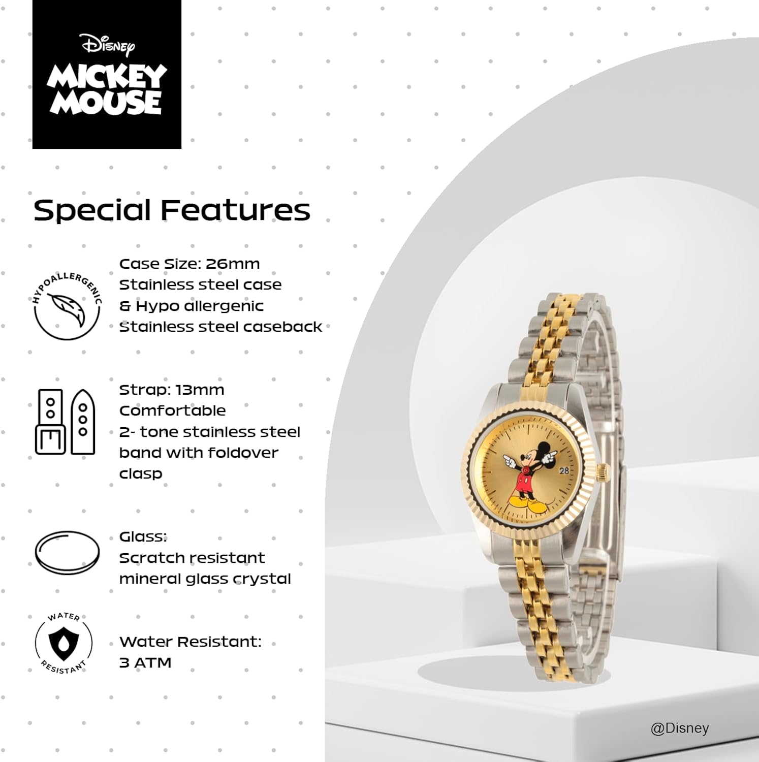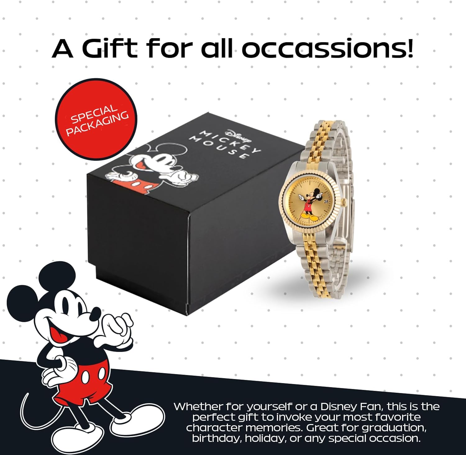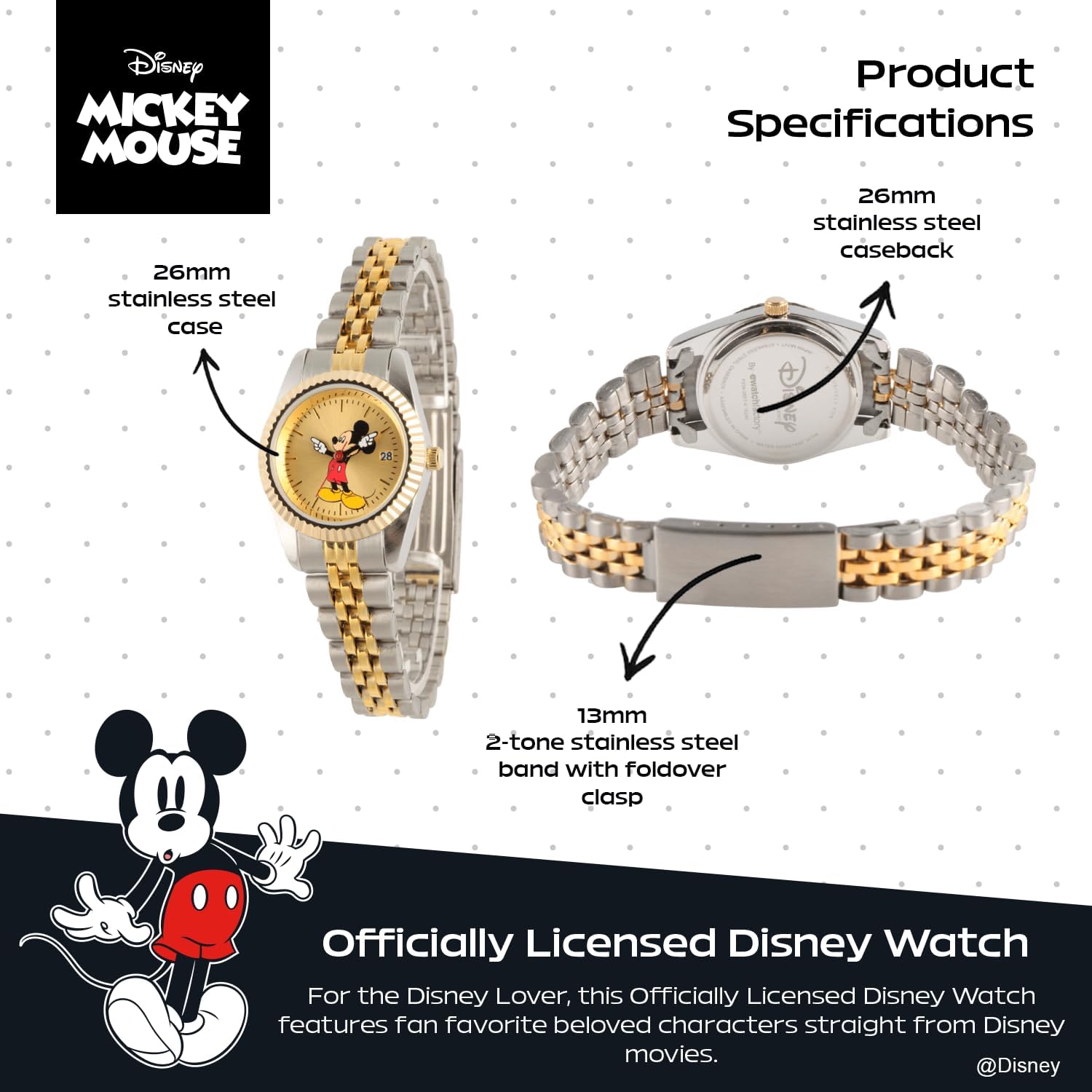 QUALITY MATERIALS- This Disney watch is crafted with the highest quality Stainless Steel Case and Bracelet with a precise Japanese Quartz Movement for accurate time keeping. It also features a Push Button Deployment Clasp to protect the clasp from ever opening. This watch also features a scratch-resistant mineral crystal to help protect your timepiece.