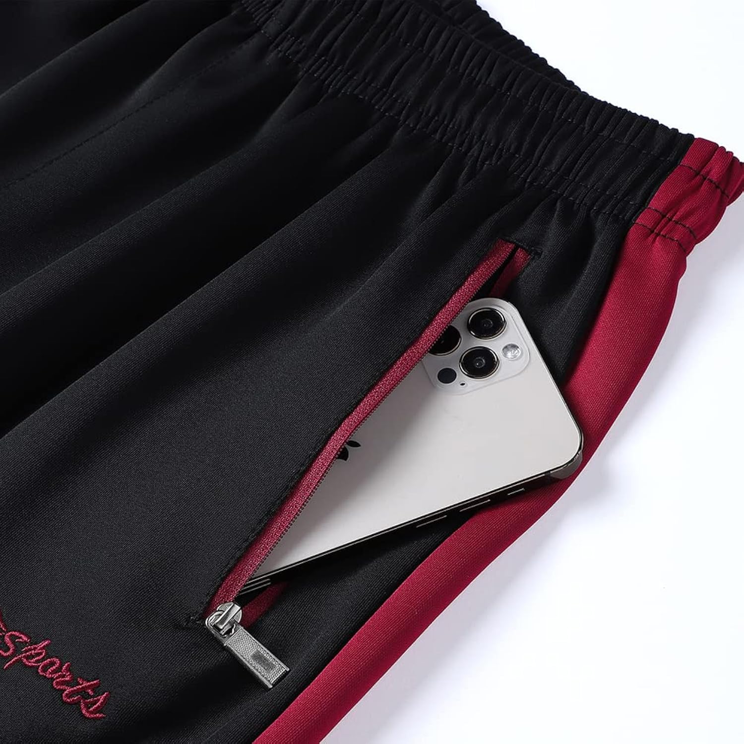 Sports straight pants with delicate waist elastic design, two zippered pockets, all design make running suit wear comfortable and safty.
