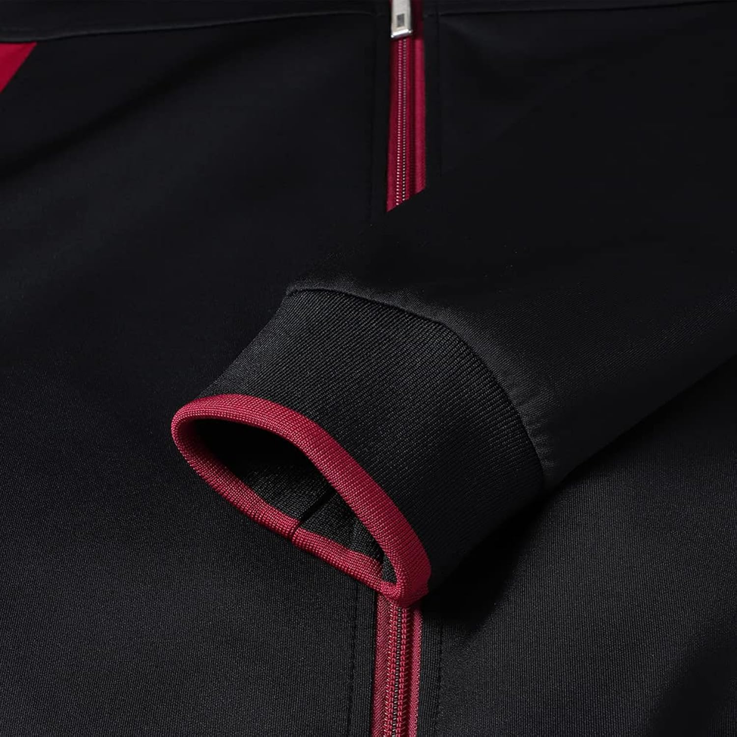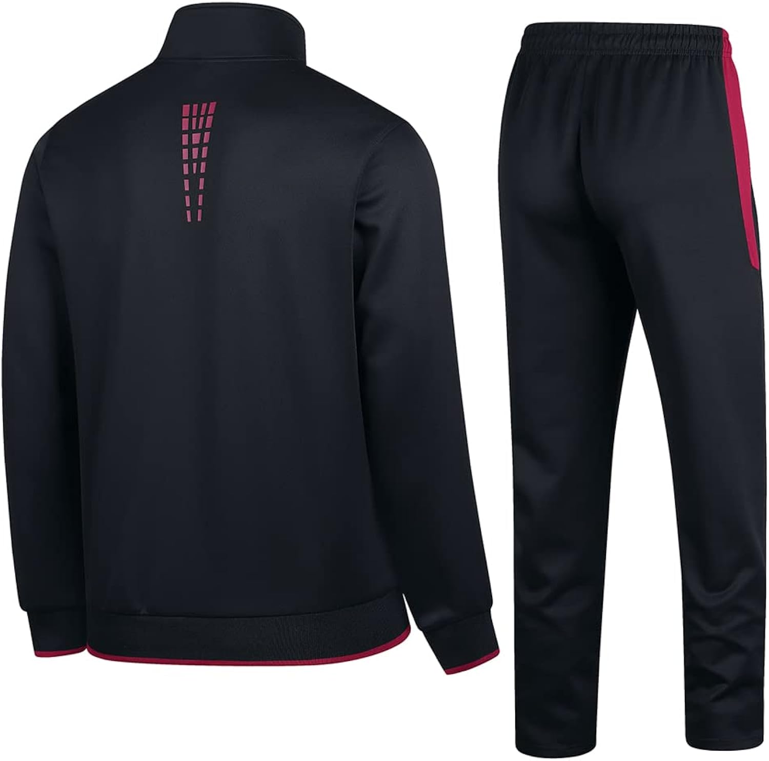 Men's Sports Outfits with full front zipper offers easy on-and-off. The stand collar design can help you to keep your neck warm, and increase your visual height. Side Zippered Hand Pockets to make items safely when exercising.