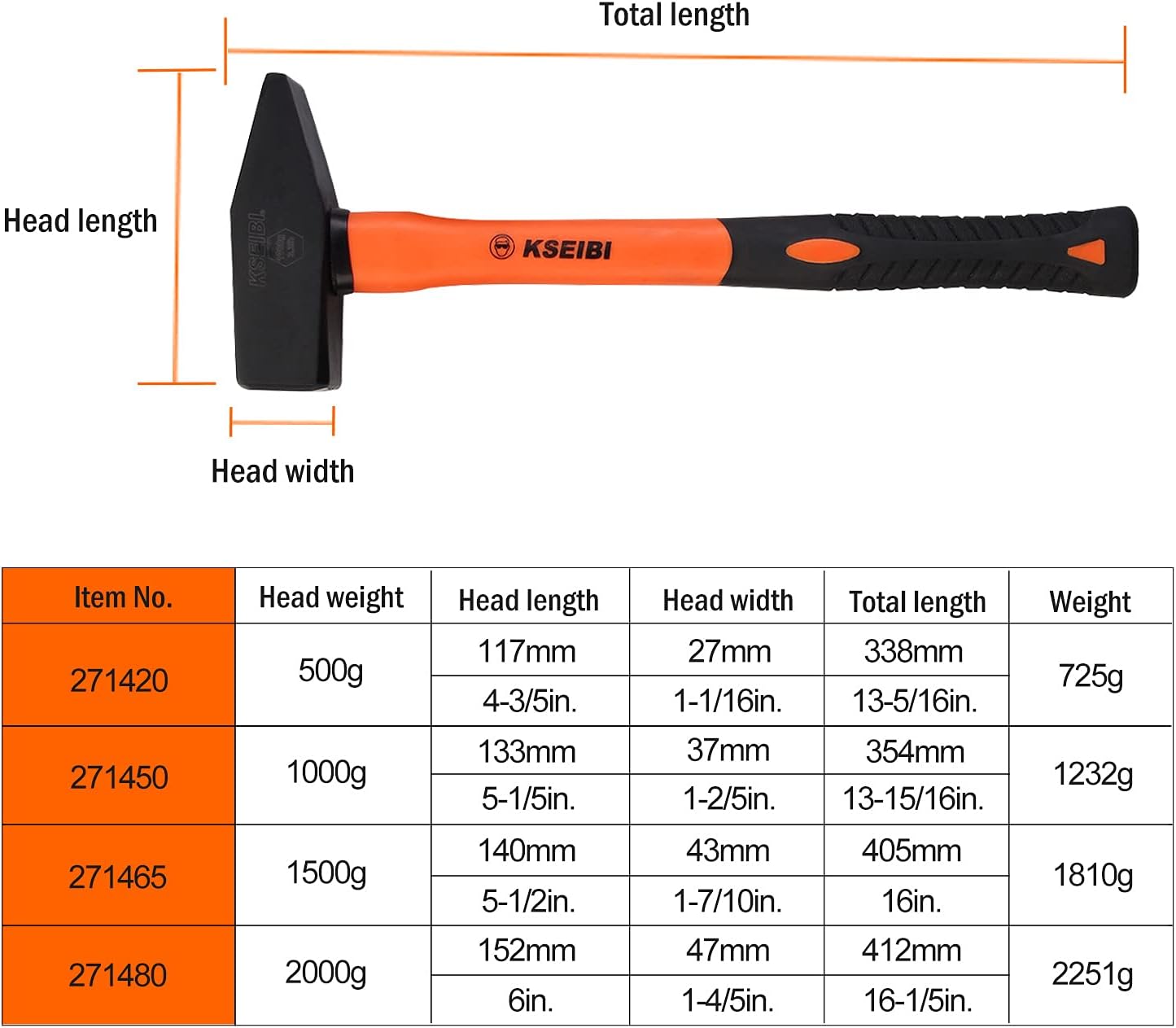 KSEIBI 271480 Machinist Engineers Hammer, Forged Steel Cross Peen Sheet Metal Hammer, Blacksmith Forging Tools (Anti-Slip ...