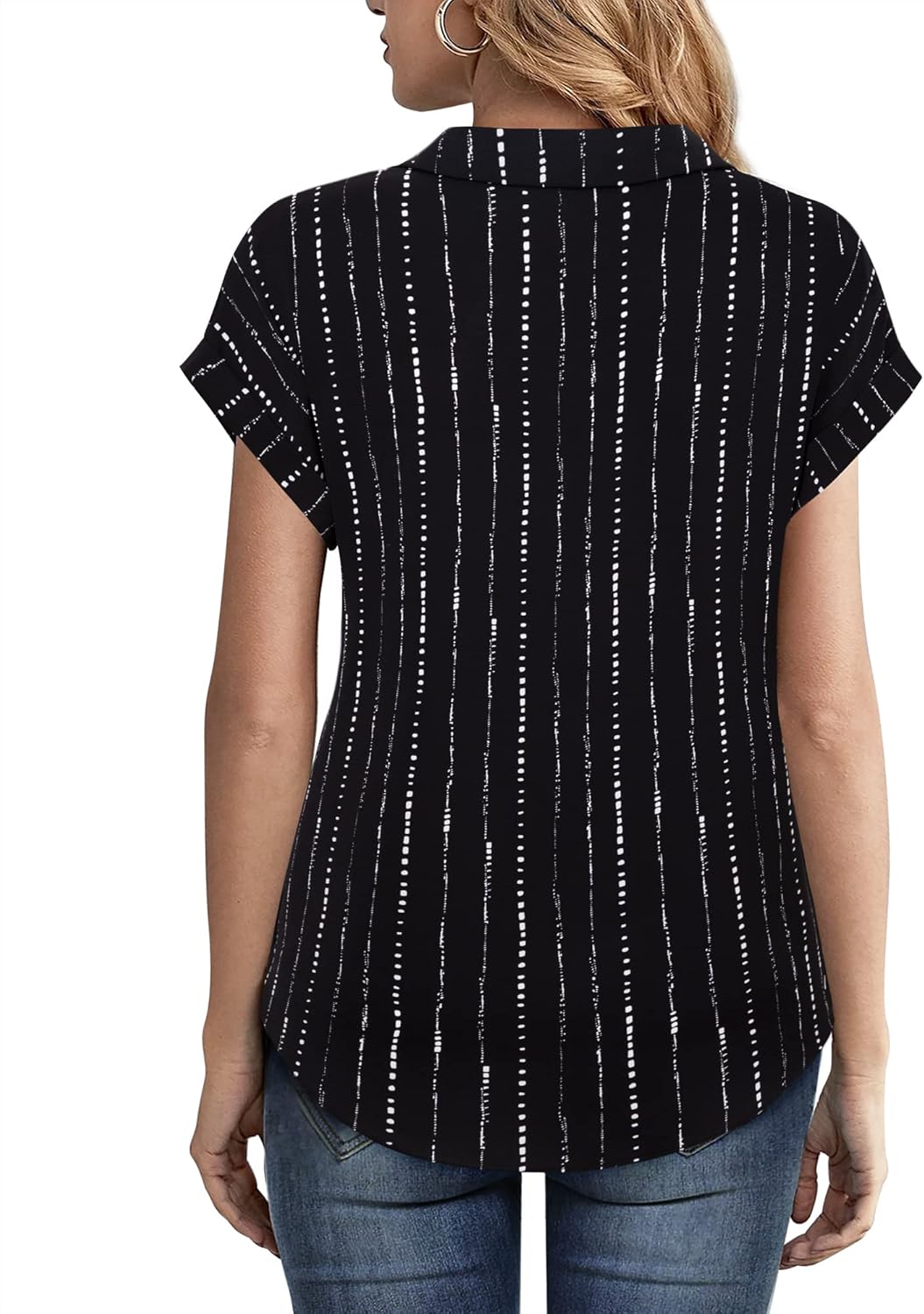 Timeson Women's Short Sleeve Chiffon Blouses for Office Work Business Attire Collared Shirts