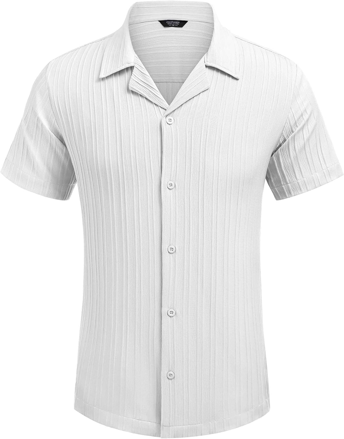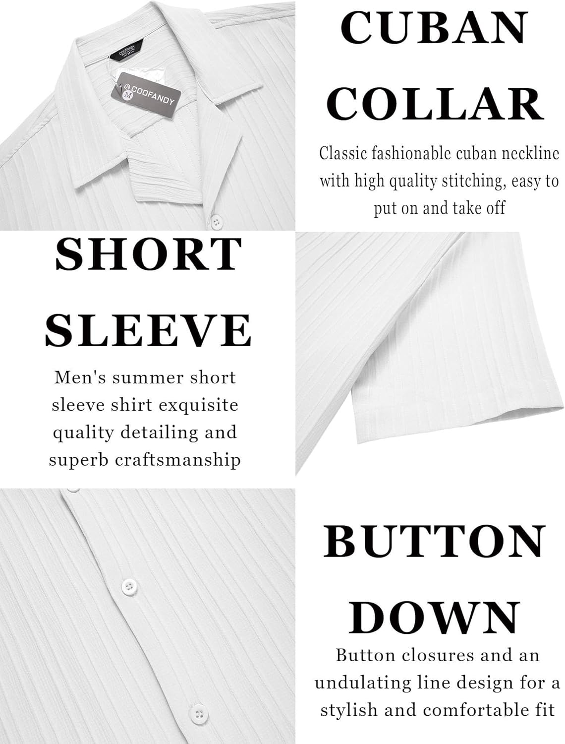 Unique Design --- Well-designed beach shirts for men feature regular fit, cuban collar, button down closure, classic solid color, slight vertical ribbing, the style is simple and fashion. It's the preferred summer shirts for you.