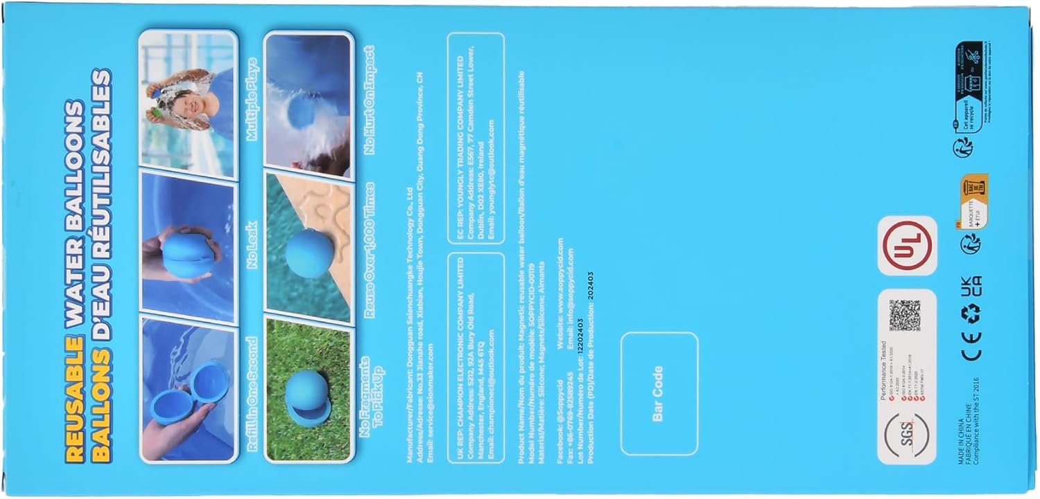 Safe and Worry-free: Our reusable water balloons awarded "Toy Insider Top Summer Toy 2023". The product has also passed the tensile test conducted by SGS in the United States. The magnets within the product are thoughtfully concealed, leaving no exposed parts and providing a worry-free play experience for children.