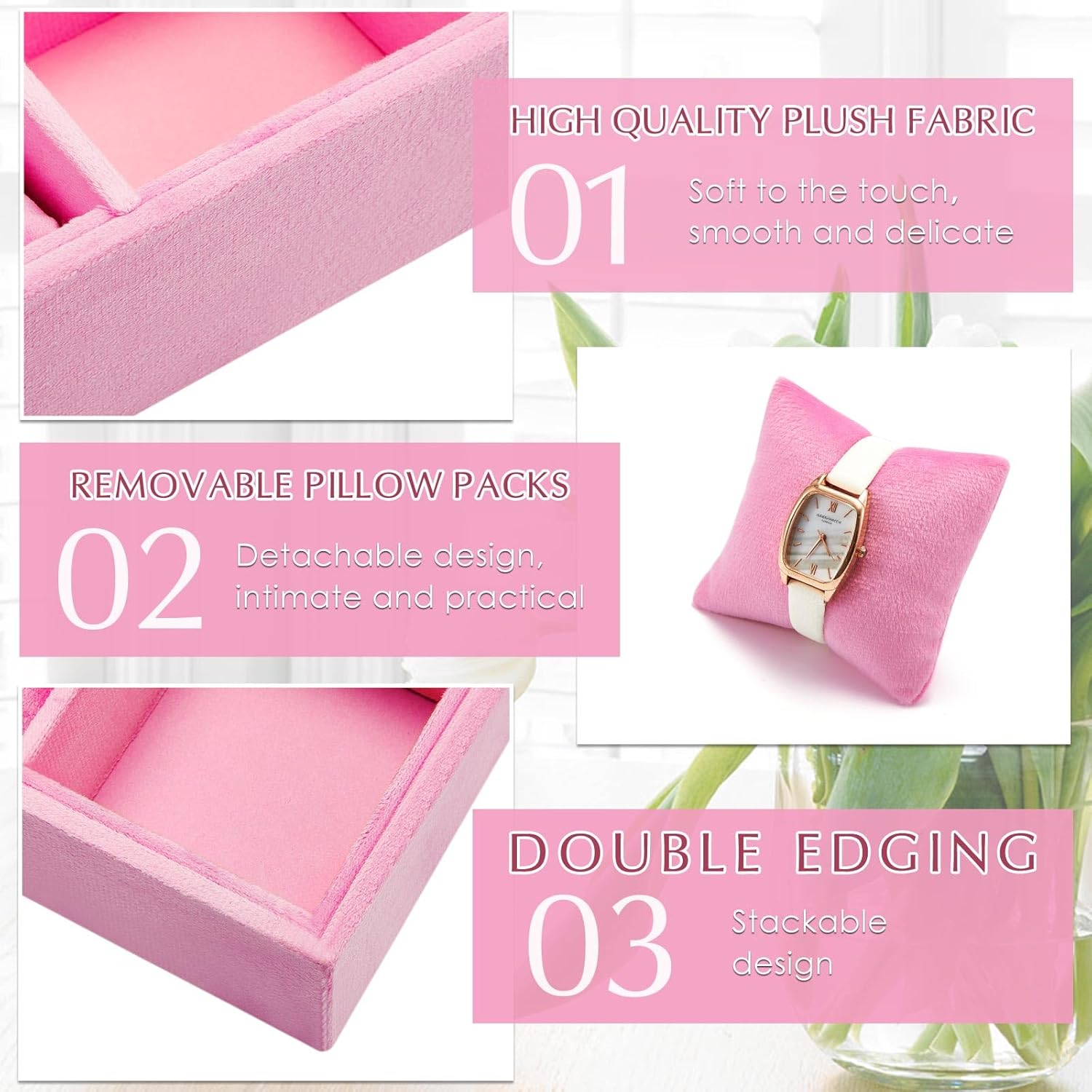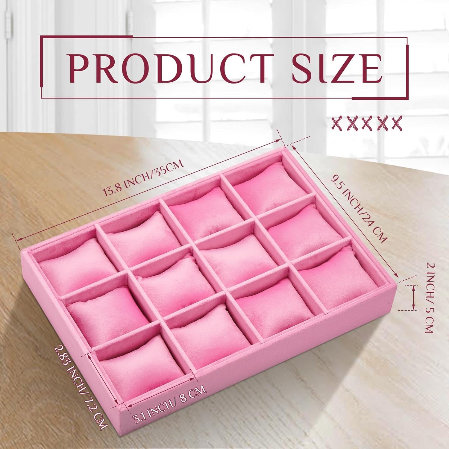 Henoyso 2 Pieces Velvet Watch Tray Jewelry Organizer 12 Grid Stackable Watch Bracelet Bangle Display Holder Adjustable Pillow