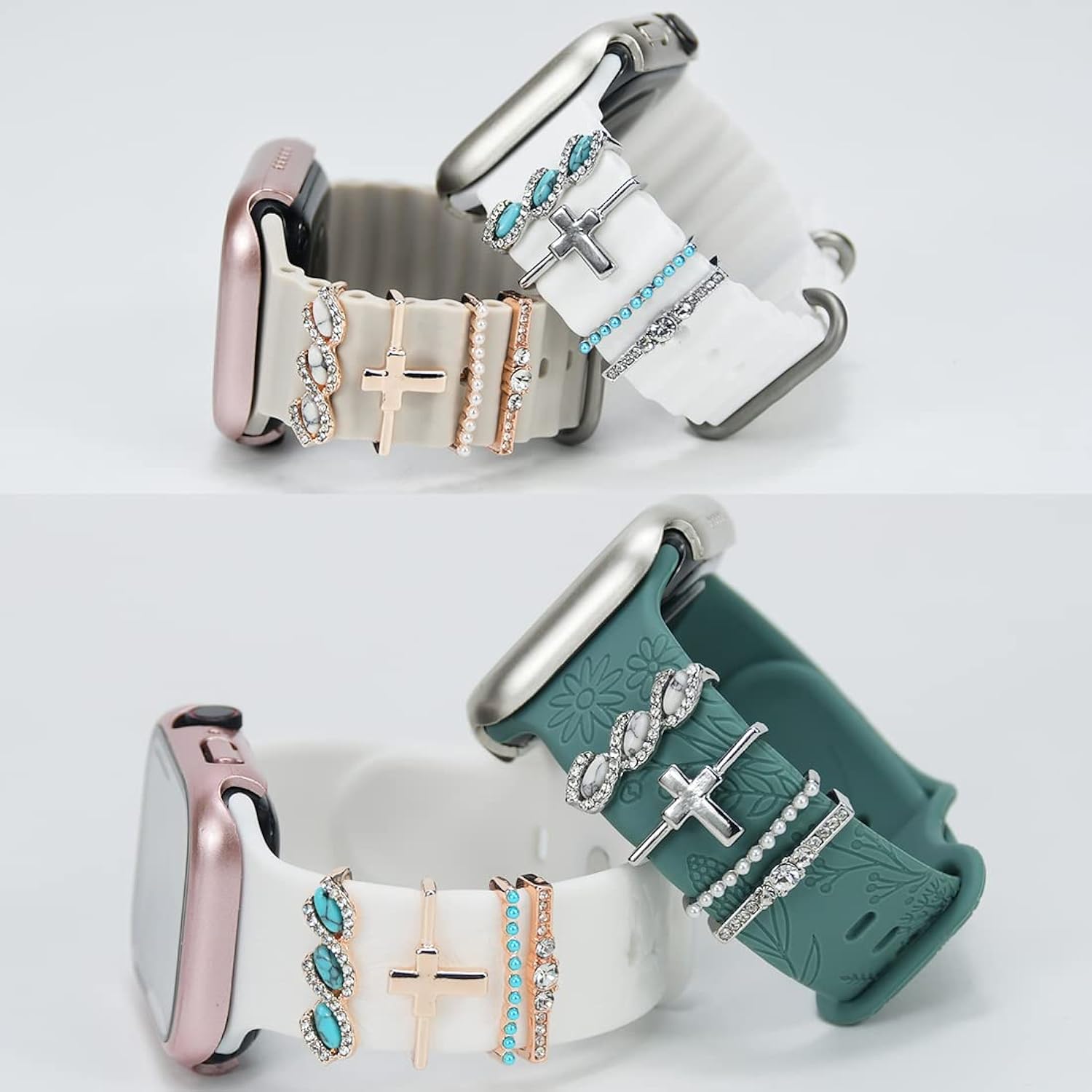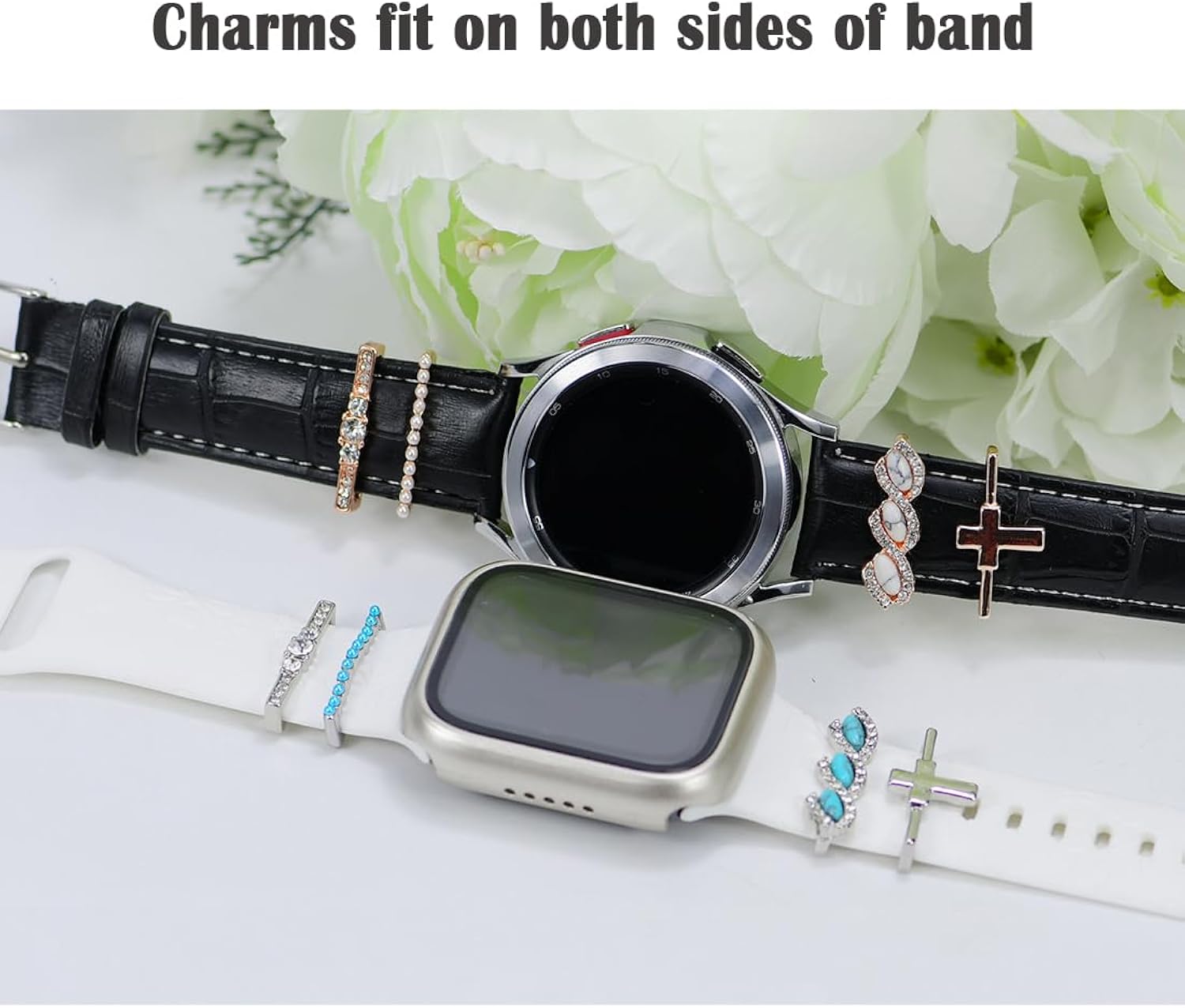 Easy to Use , charms for watch bands for women silver cross charms classy Ornament band charm , watch charms for band women clasp set are made of high quality metal and sparkling crystals, highly polished, super high strength, wear-resistant, and protect your skin from harm, high-end material that is not easy to fade, delicate engraving, gorgeous,noble,elegant,cute and bling design, make you and your smart watch stand out from the crowd