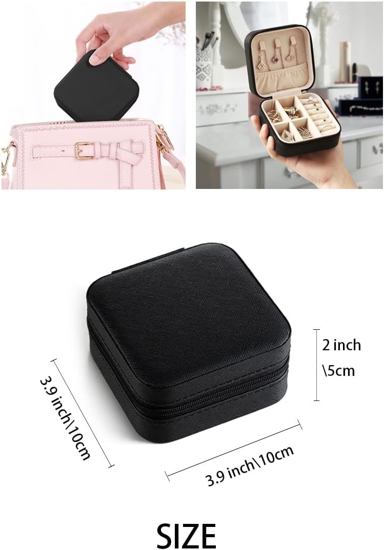 TRAVEL JEWELRY CASE - Travel jewelry box only the size of a palm of your hand, Size 3.9*3.9*2inch/10*10*5cm, Light Weight and Durable, easy to carry in a Handbag, Suitcase, Purse and Gym Bag, it is a travel essentials and travel accessories, hold your jewelry while Traveling, Flights, Go Abroad, Vacation, Party, Cruise, etc. as a gift you can give to our friends around you who love to travel.