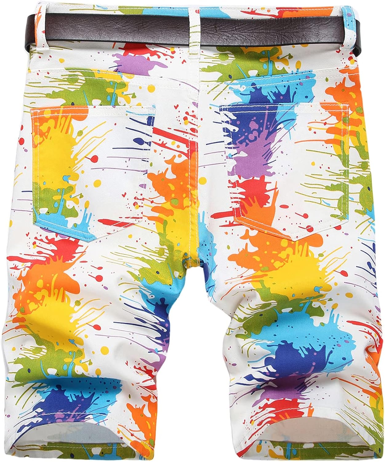 Baylvn Men's Casual Ripped Printed Denim Shorts Slim Fit Summer Beach Jeans Shorts