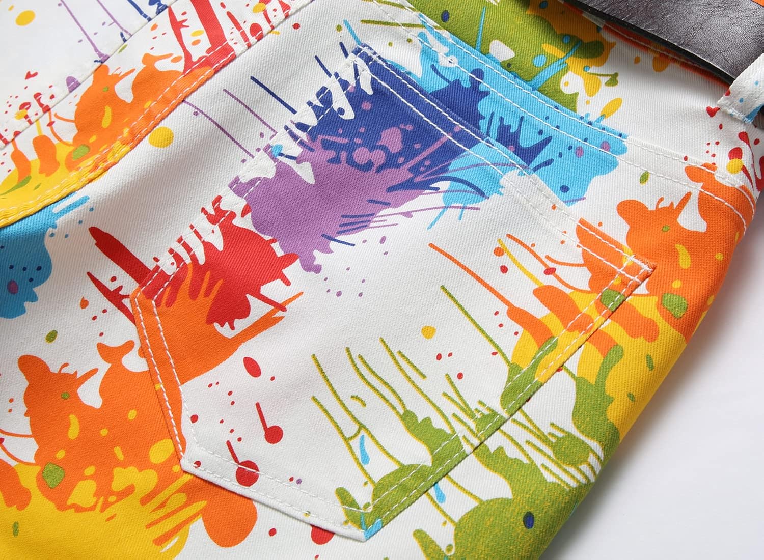 Baylvn Men's Casual Ripped Printed Denim Shorts Slim Fit Summer Beach Jeans Shorts