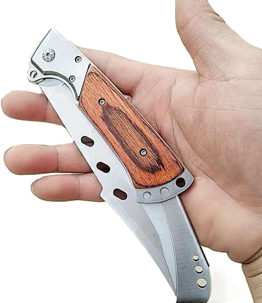wellsure Pocket Knife,Pocket Folding Knife with 7Cr17 Stainless Steel, Tactical Knife for Camping Hunting Hiking, Wooden H...