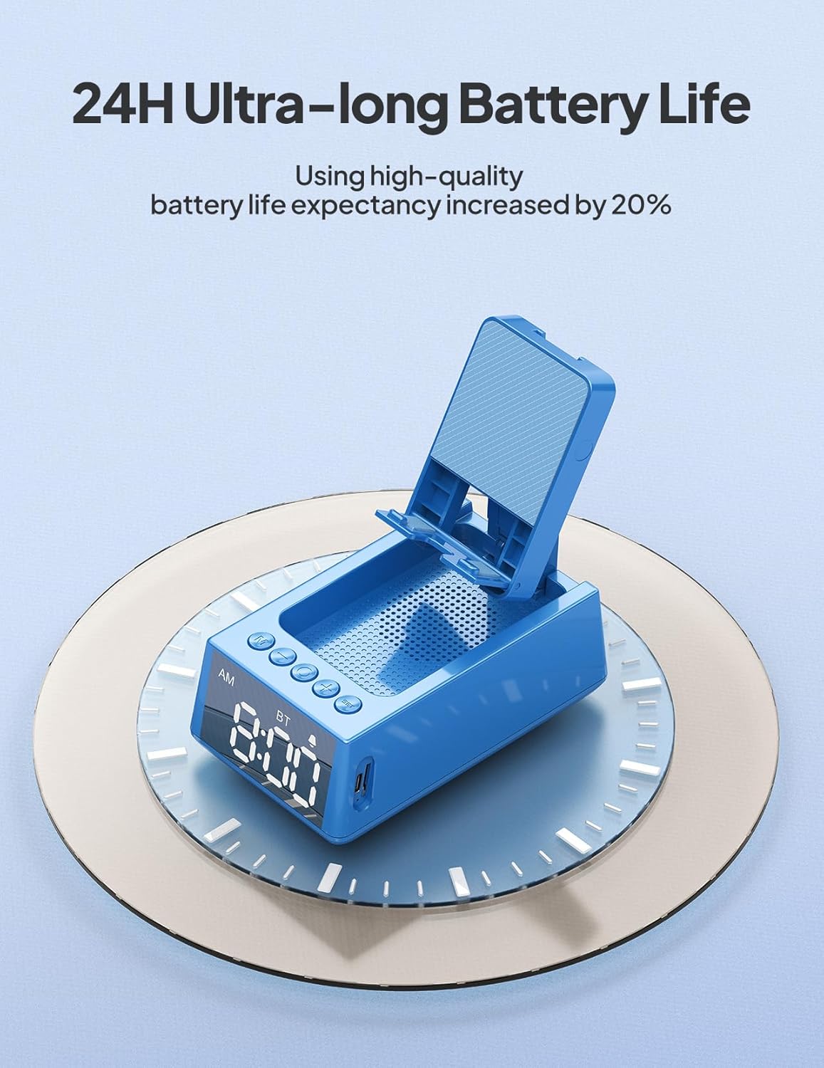 3 In 1 Design: A multifunctional, stylish and cool small object that combines a Bluetooth speaker, clock and mobile phone stand. It adopts streamline and round corner design, beautiful and generous. The rotating bracket greatly enhances the viewing experience, ensuring all angles of usage requirements. Adopt stereophonic sound effect. Lower bass is more mellow, higher pitch is clearer, so you can also experience the ultimate cinema feeling at home. It's the perfect gift for yourself and others.