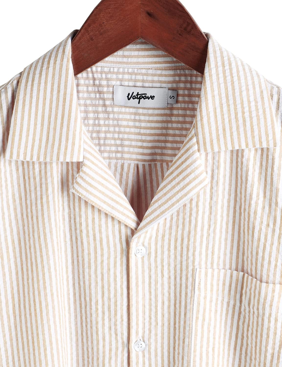 VATPAVE Mens Striped Summer Shirt Casual Button Down Short Sleeve Beach Shirts Cotton Linen Shirts for Men