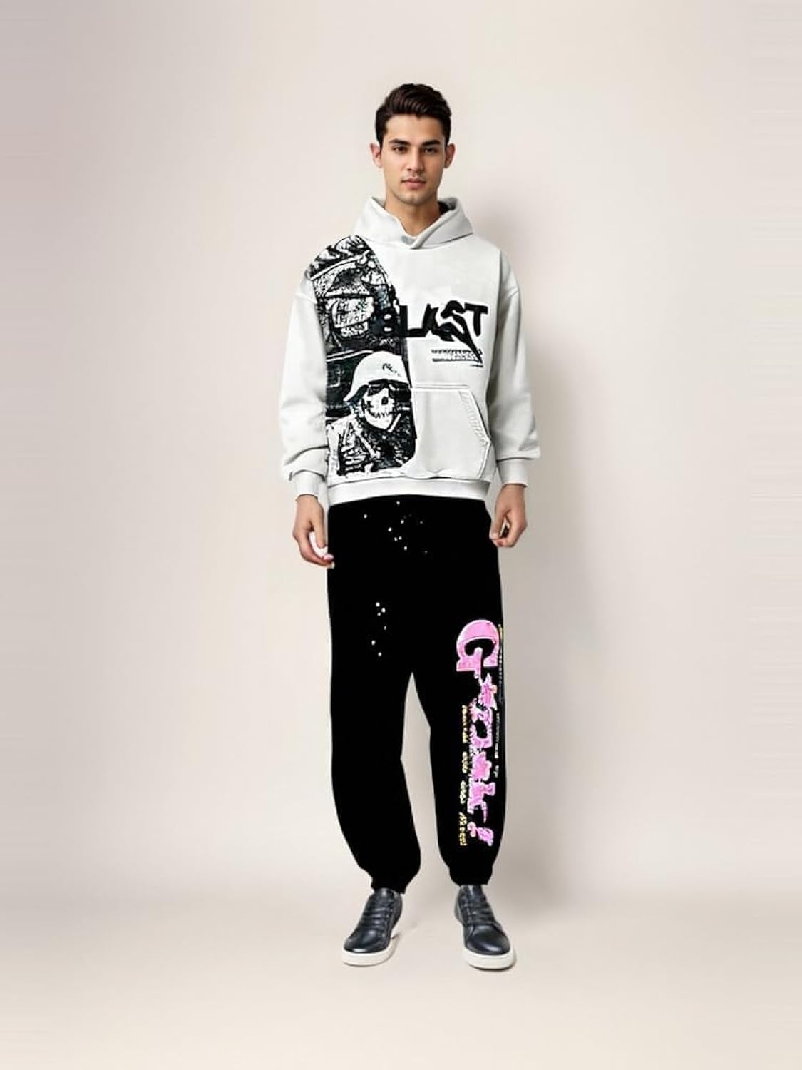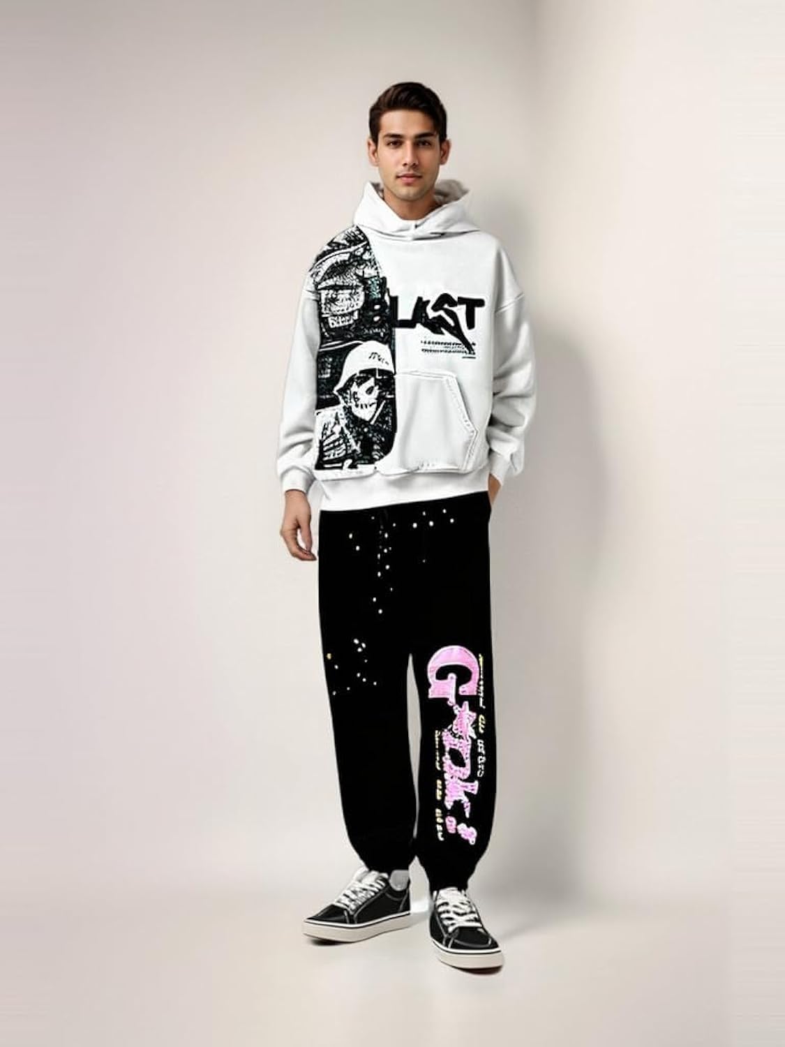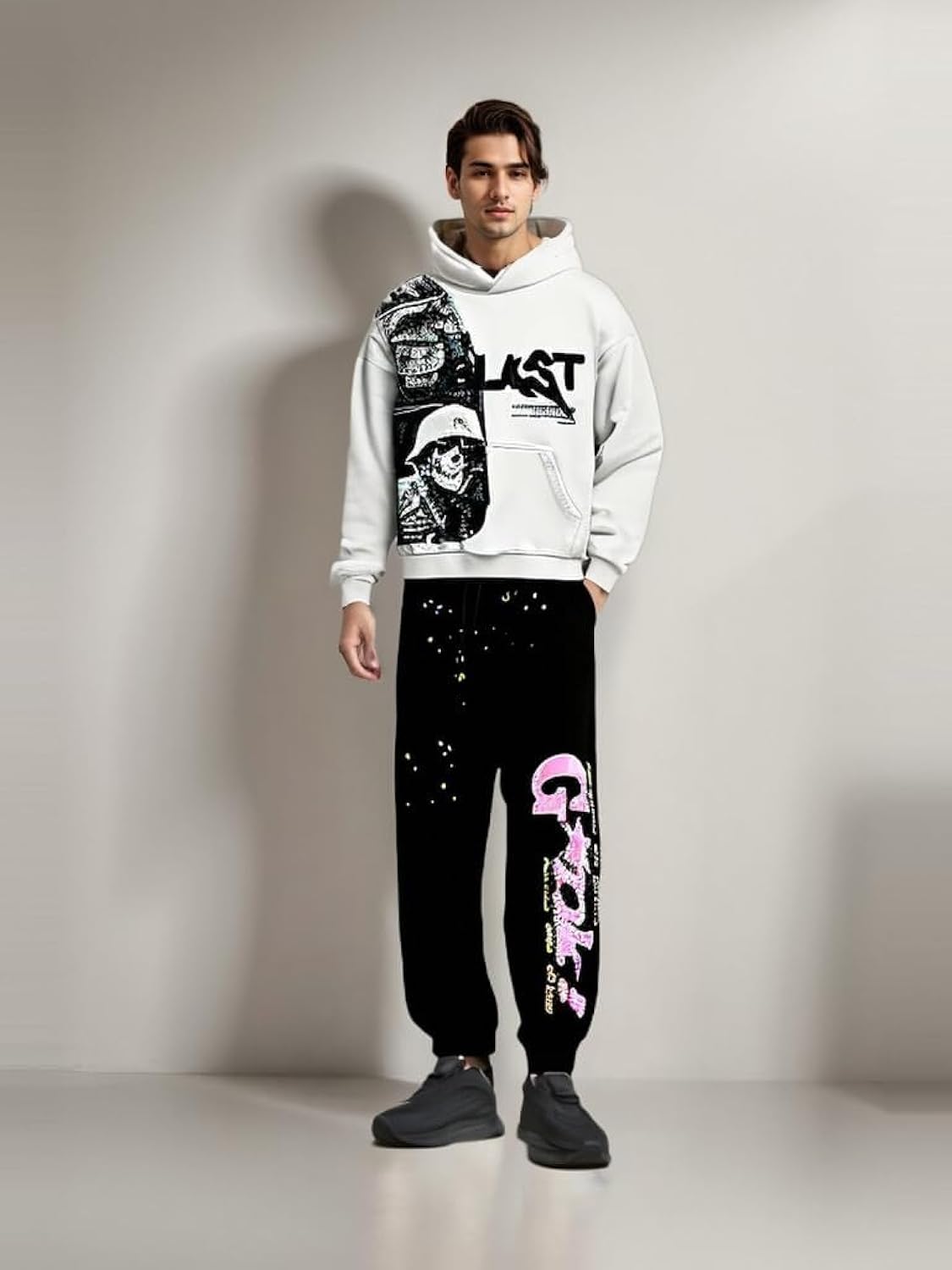 Obenie Retro Y2K Hoodie Gothic Casual Alphabet Blast Print Pattern Skull Fashion Hoodie Men Harajuku Men Clothing