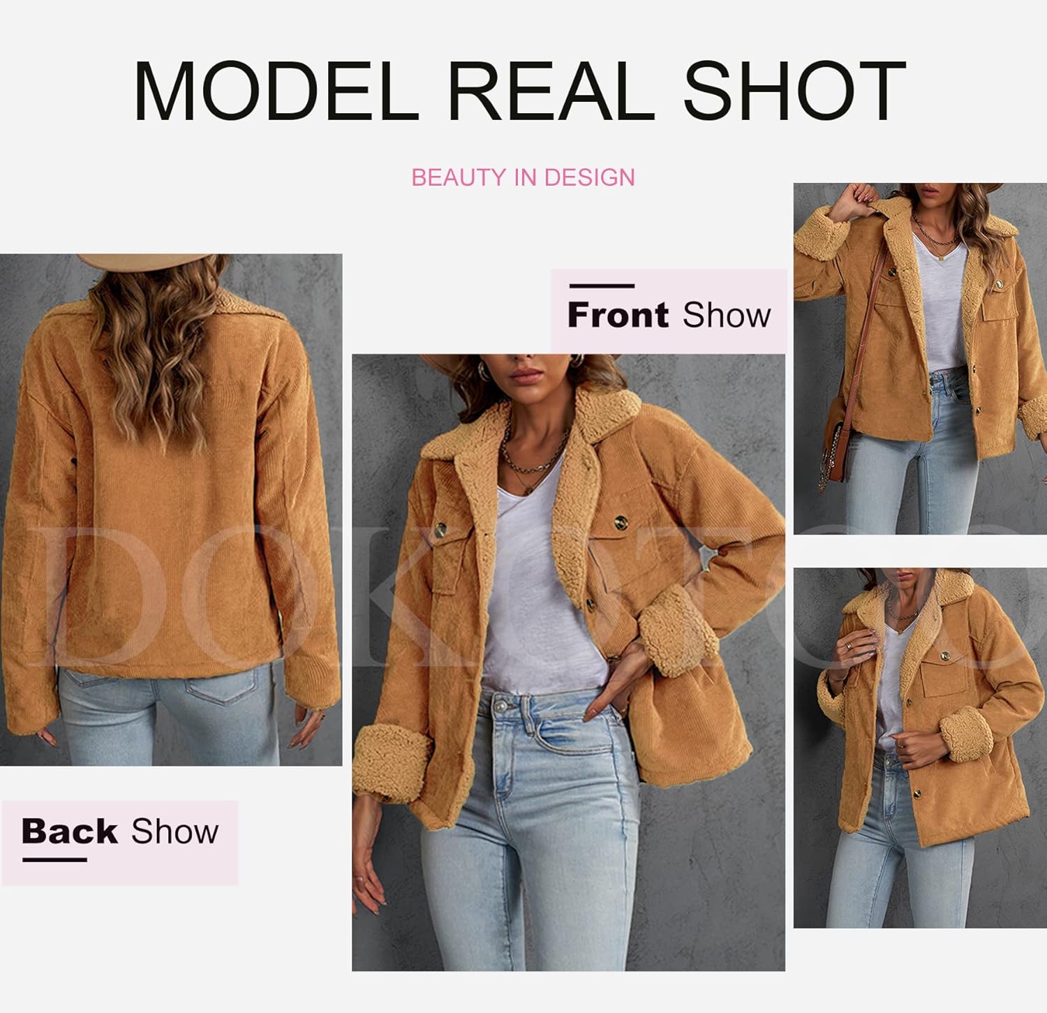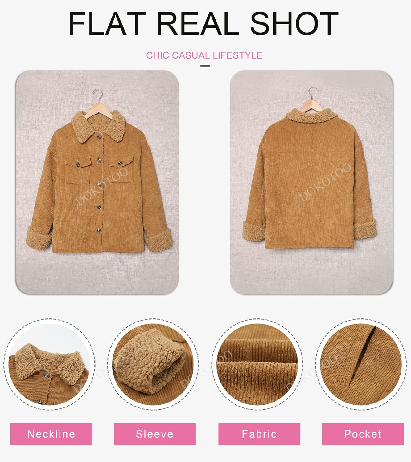 Dokotoo womens corduroy coat is made with high-quality fabric. Soft, lightweight and comfortable to wear