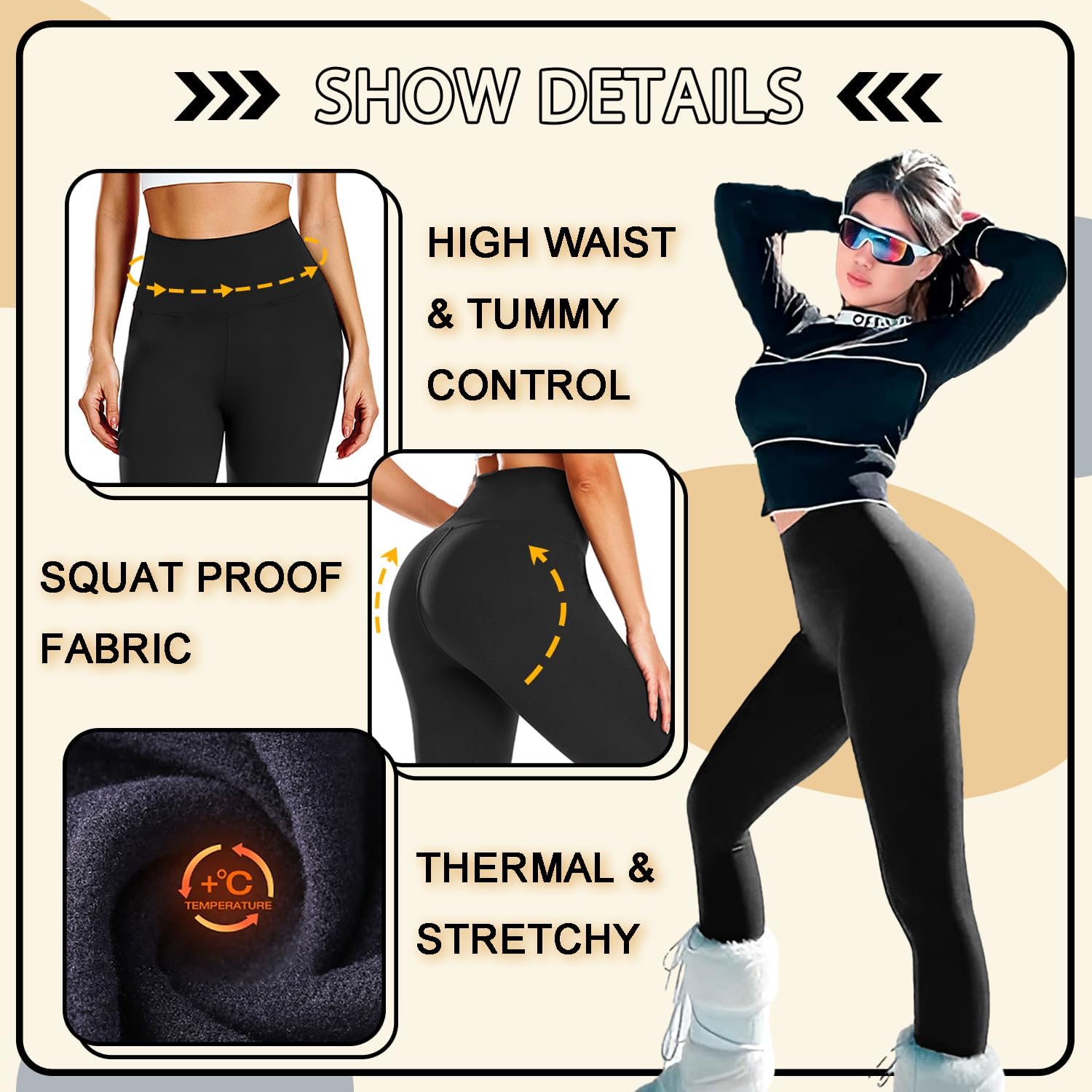 FLEECE LINING INTERIOR - With Buttery Soft Fleece Interior, Our Heat-Tech Warm Leggings for Winter Will Fit You Like a Second Layer of Skin and Offer You Both Comfort & Warmth When Temperature Drops. Leggings for Women are Designed to Add Warmth and Style without Bulkiness, So You Can do any Activities Indoor &Outdoor.